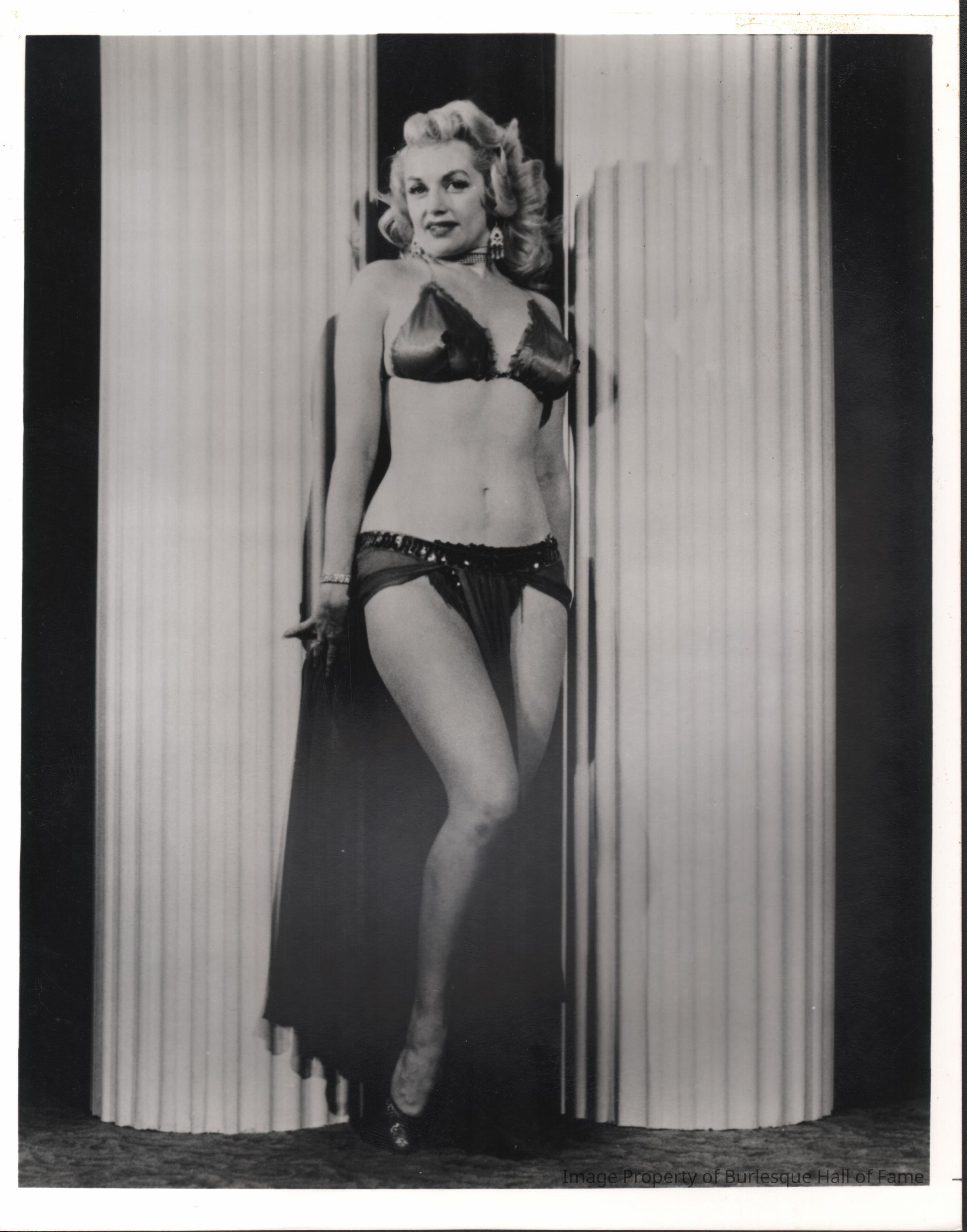 Photo - Dixie Evans B&W, triangle bra top and panel skirt