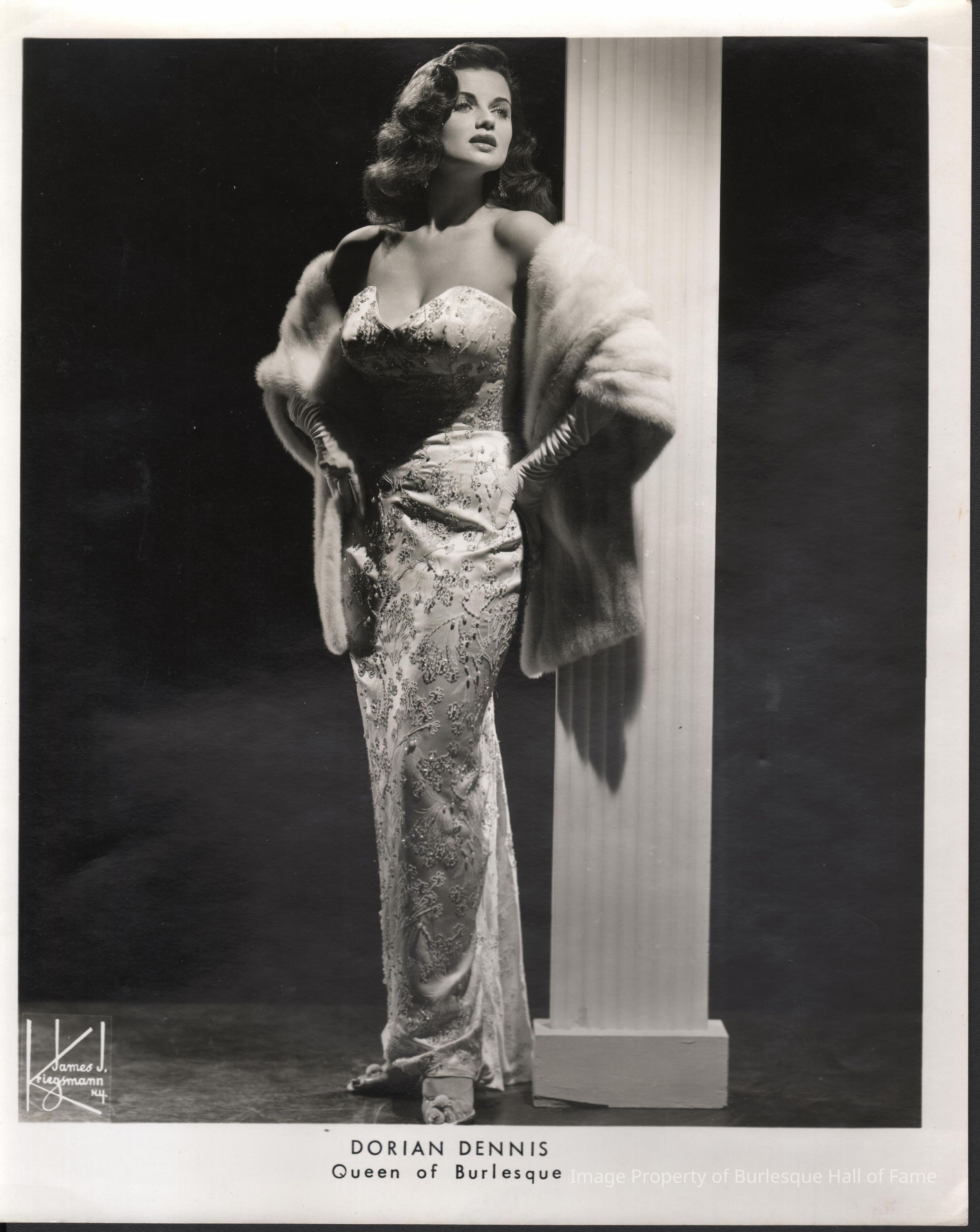 Photo - Doran Dennis B&W gown & fur posed "Queen of Burlesque"
