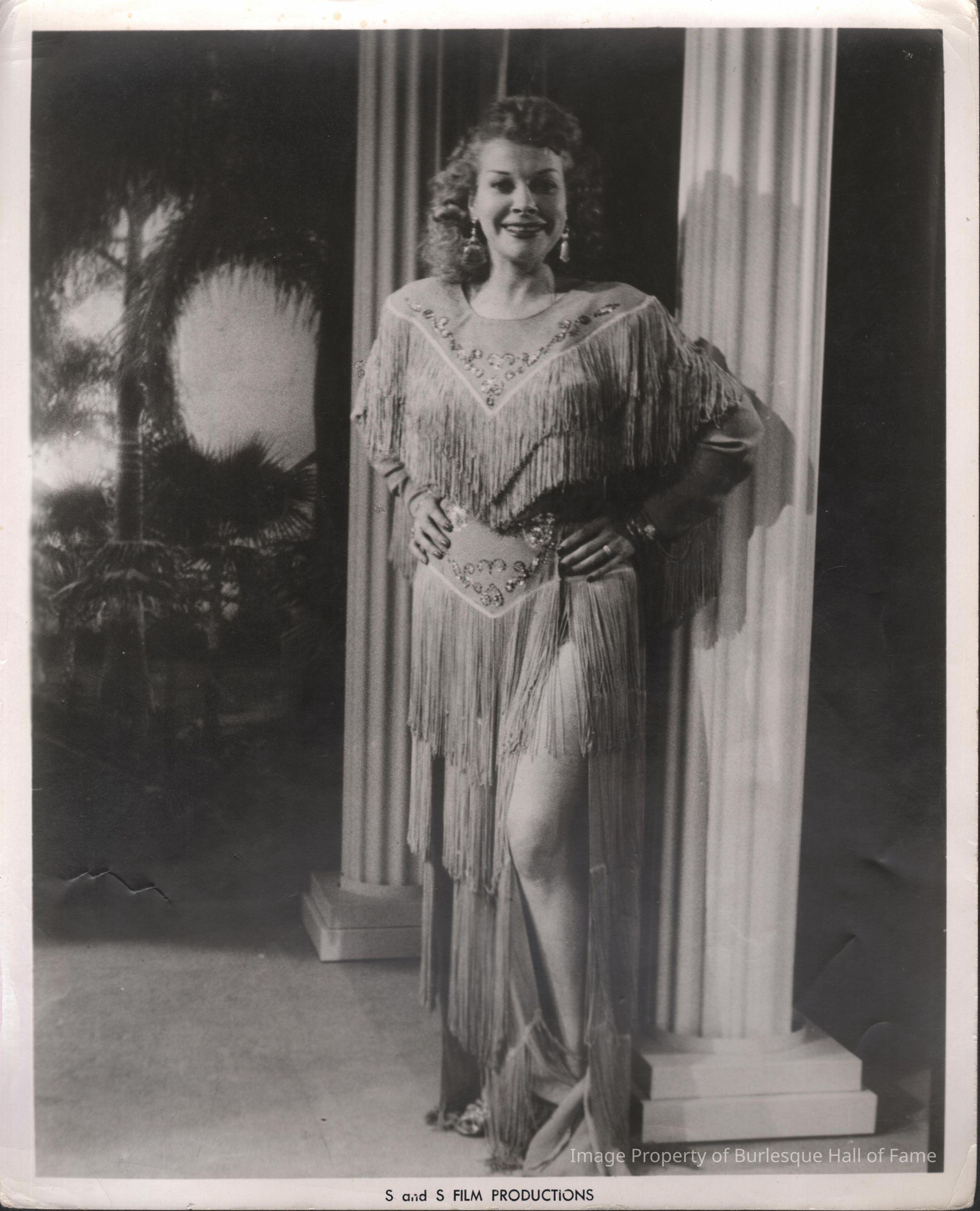 Photo - Joy Davis Hula Lo written on back Property of Dixie Evans stamped on back S&S File Productions Fringe dress