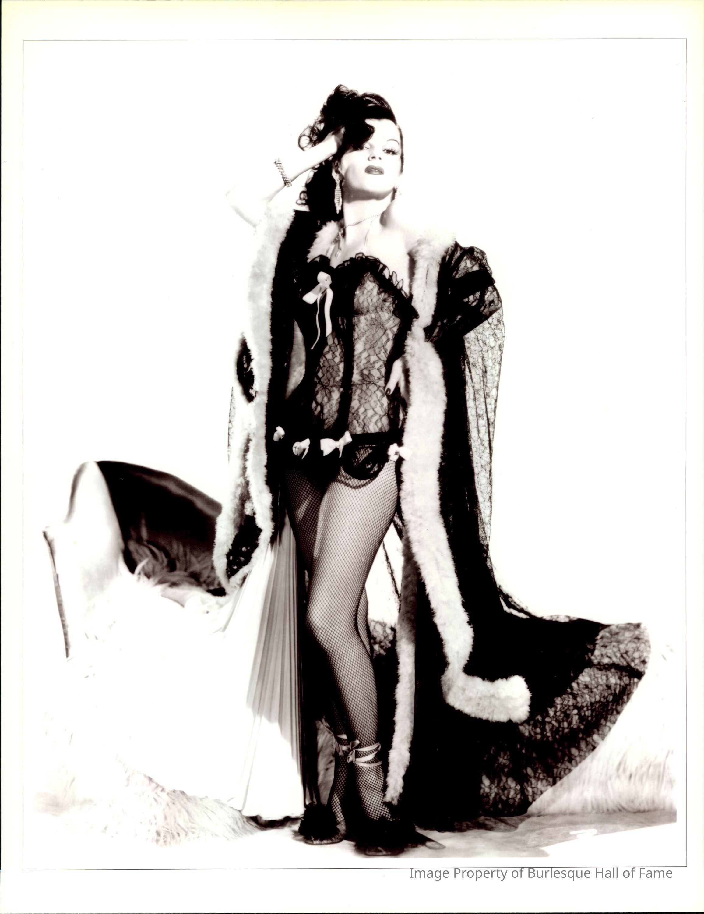 Photo - Marie Annette. B&W. Lace bodies and fur trimmed cape