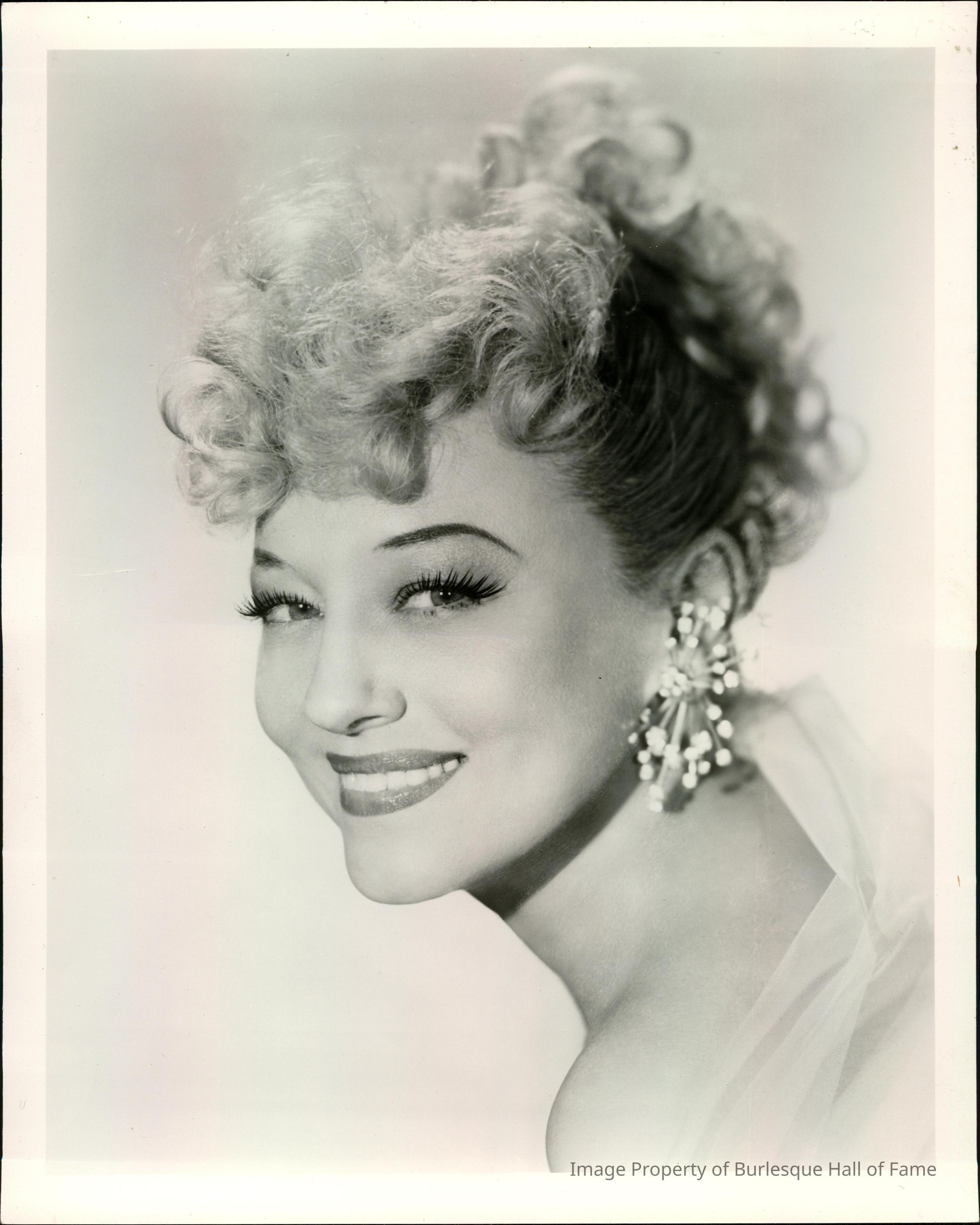 Photo - Sally Rand-Glossy Paper-head shot-hair in up-do-B&W