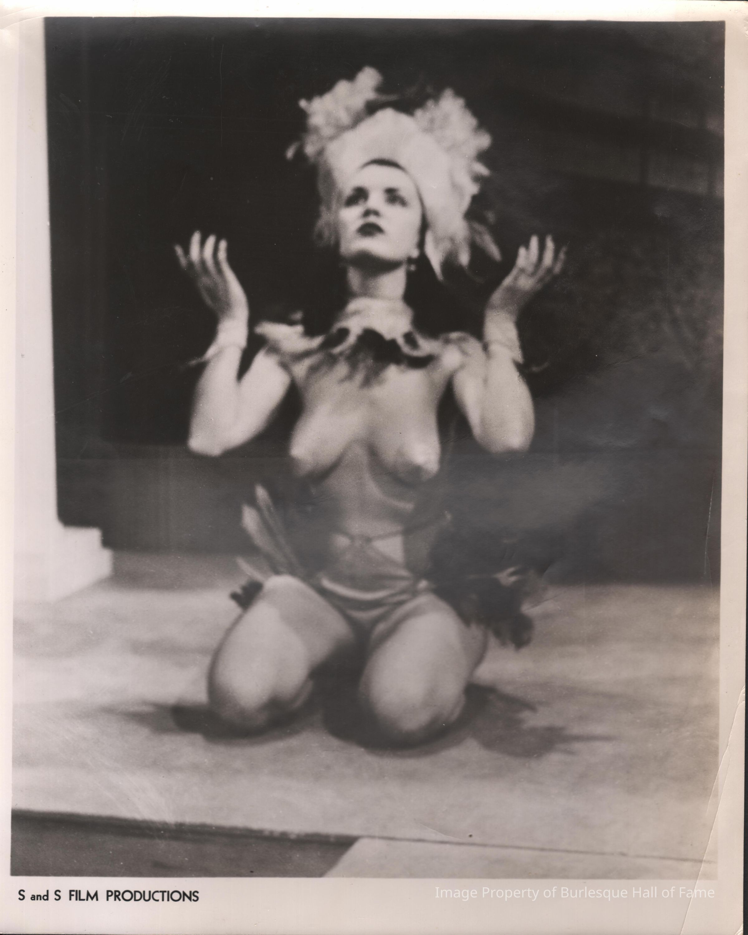 Photo - Zandra written on back, B&W pasties & panty, feather headdress and bustle "S&S Film Production