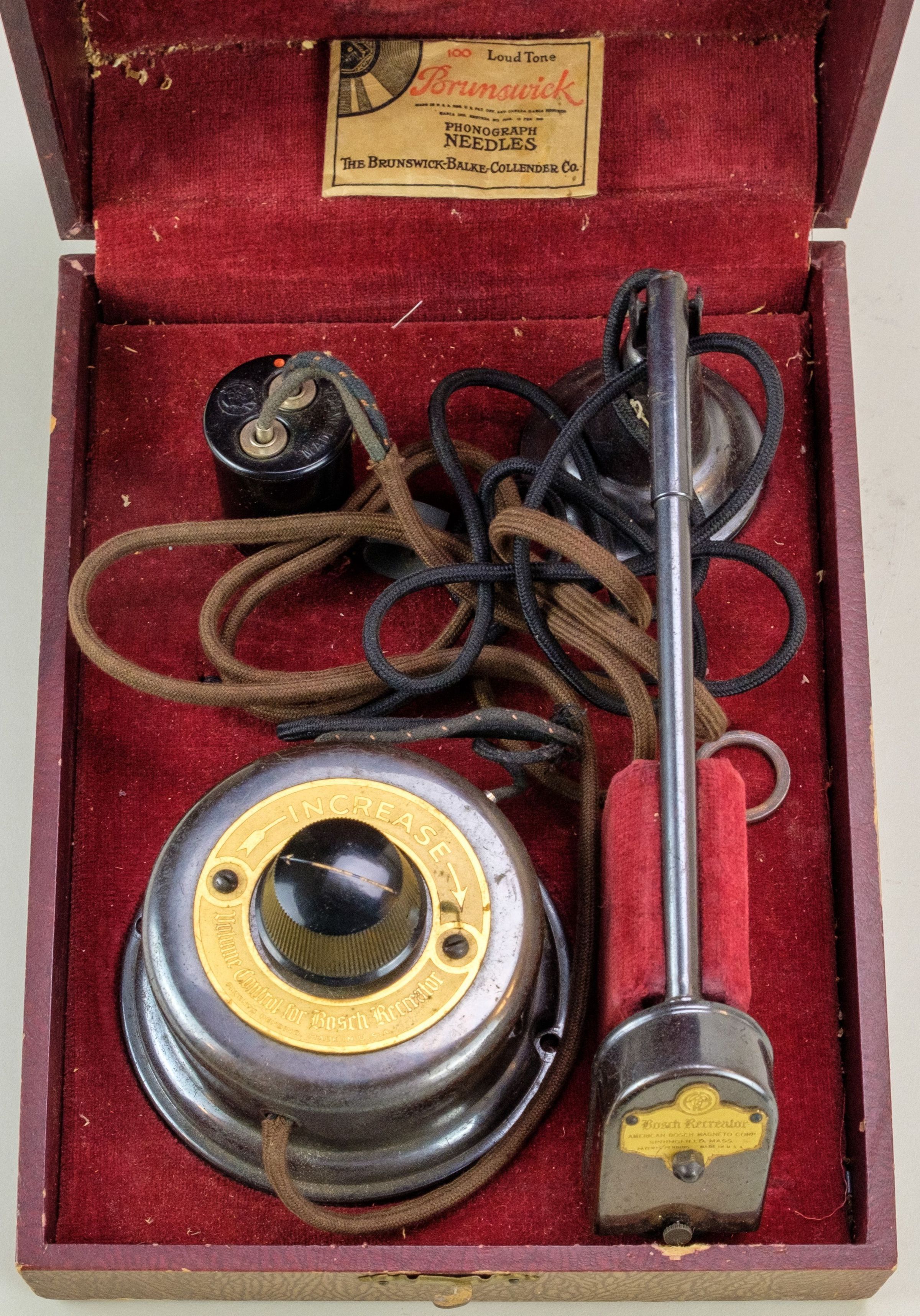 Allows Victrola style record player to use audio amplifier and speaker in radio.Collection
