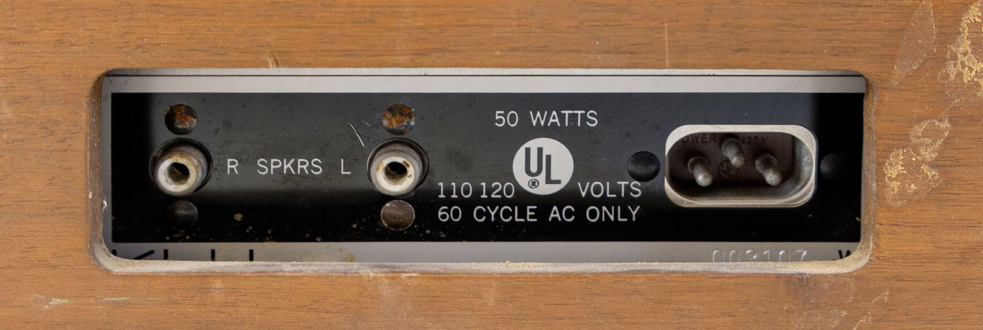 Auxiliary input connections on top and connectors on rear of case for remote speakers. Cost when sold new in 1963 was about $200.