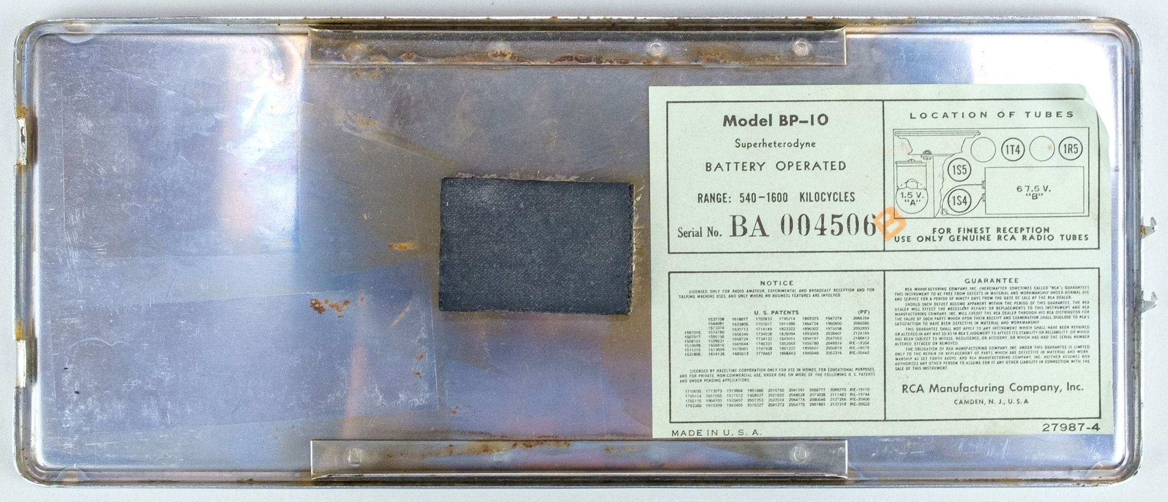 Model BP-10 Personal; SN BA 004506