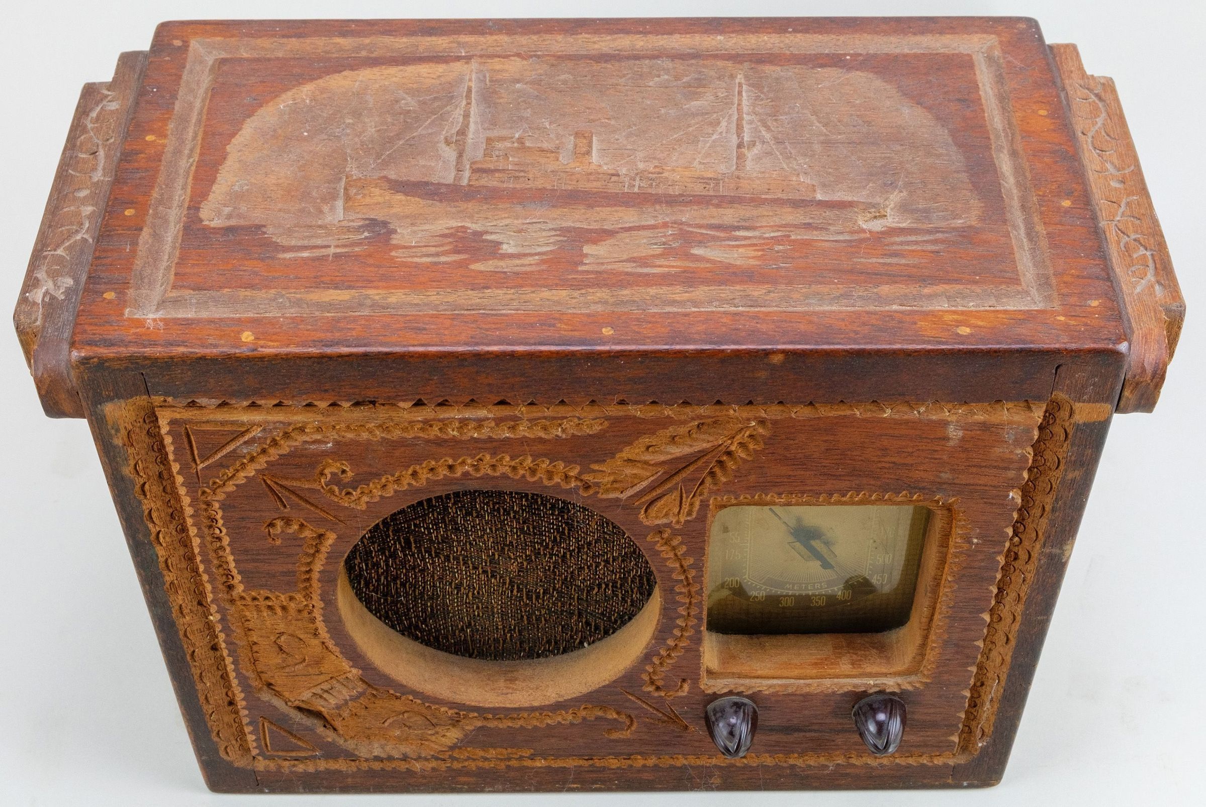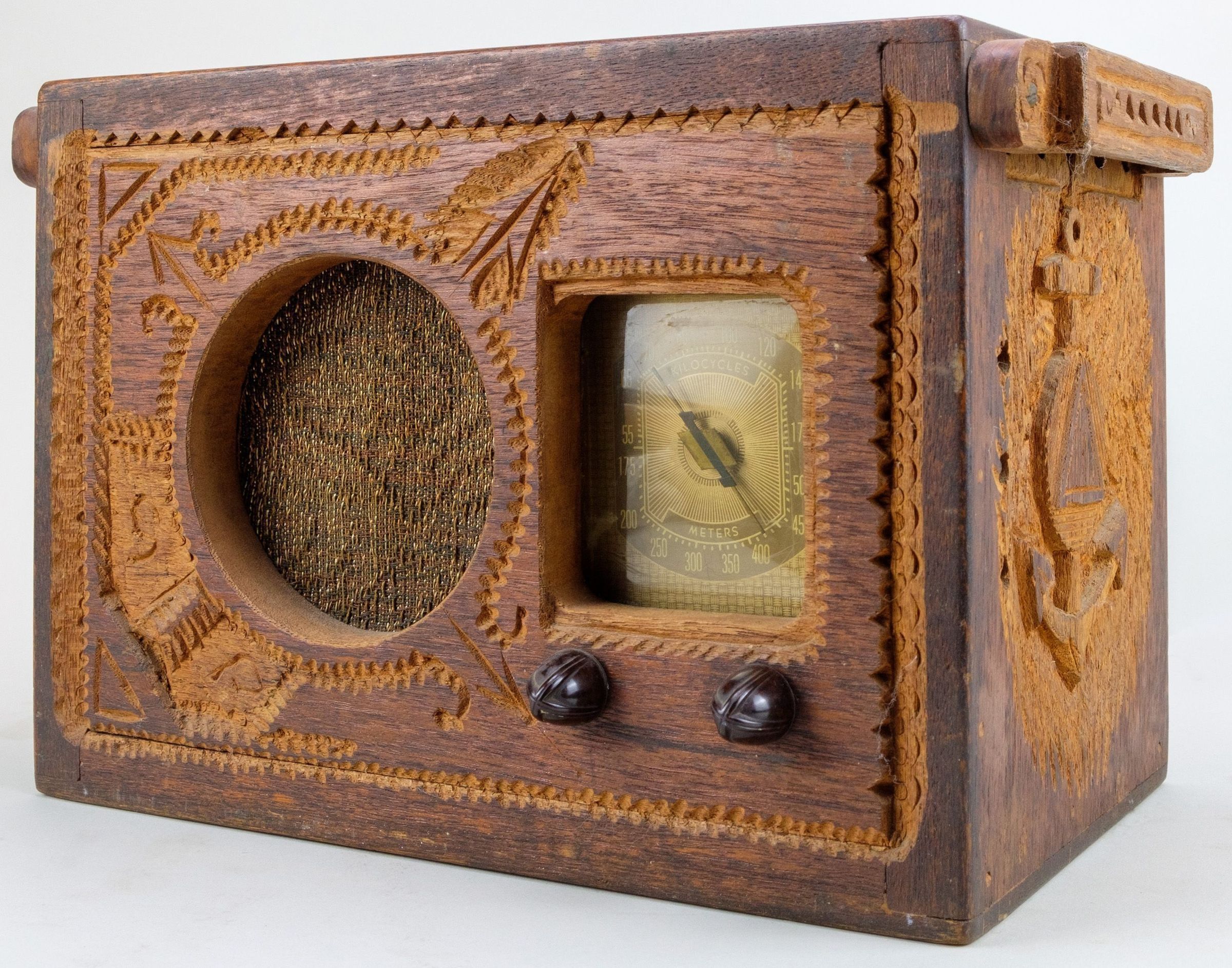 Standard Broadcast Radio w/Custom Carved Nautical-themed Wooden Case