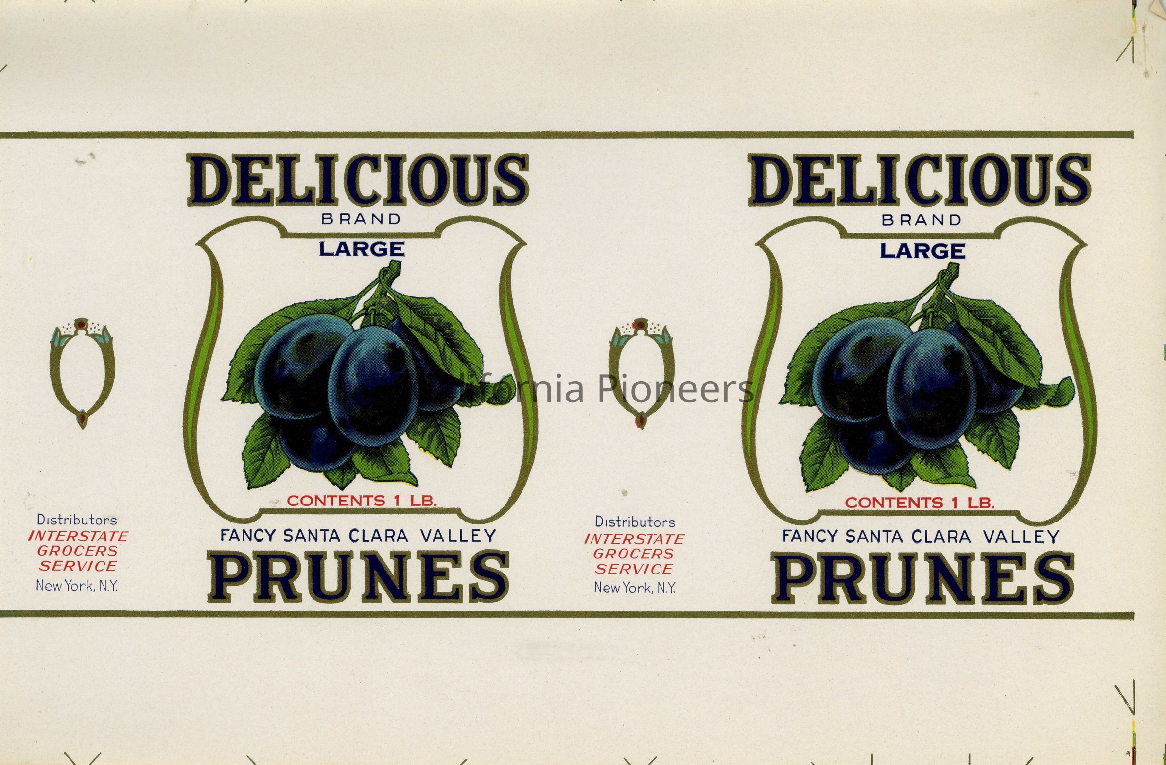 Label: Delicious Brand Large Fancy Santa Clara Valley Prunes