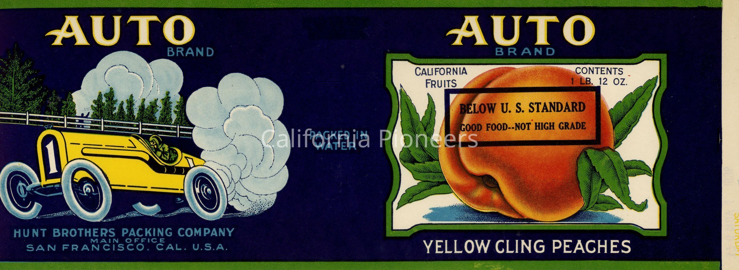 Label: Auto Brand Yellow Cling Peaches - Below U.S. Grade