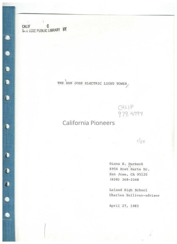 1983 entry to the California Pioneers Essay Contest by Diane E. Durbeck