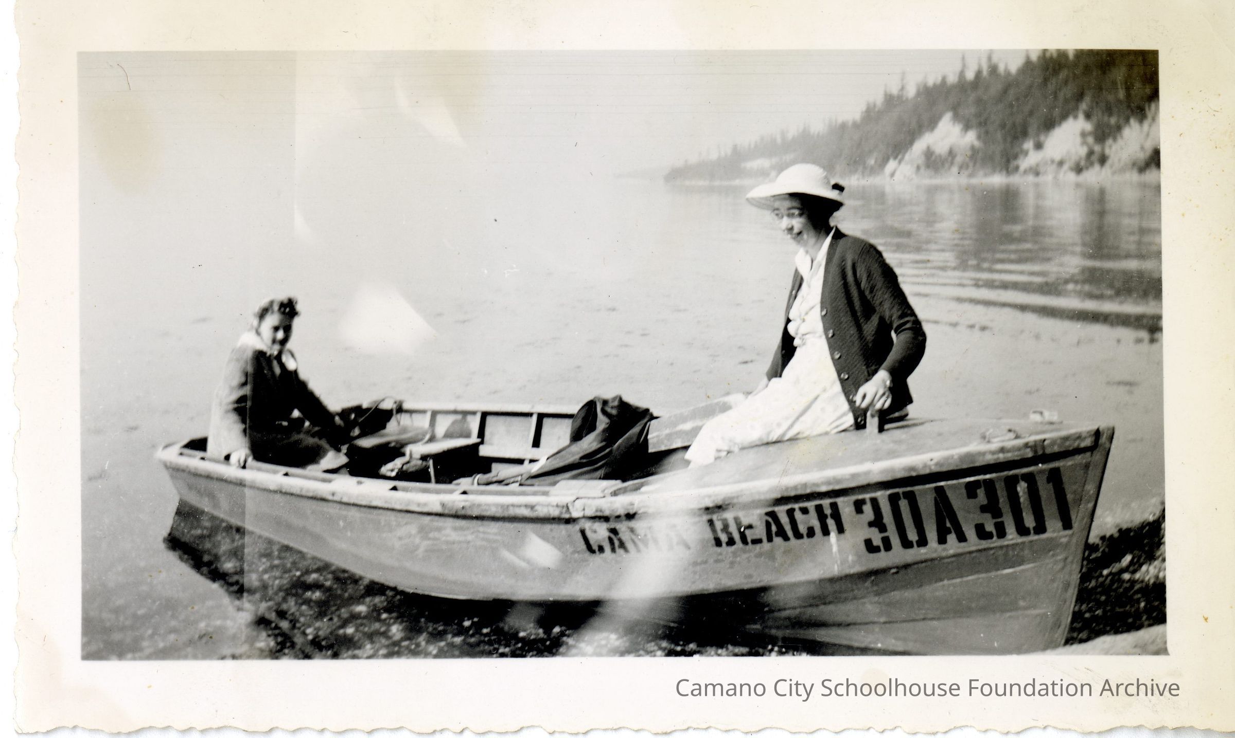 A photograph of two people in a Cama Beach resort boat.Collection