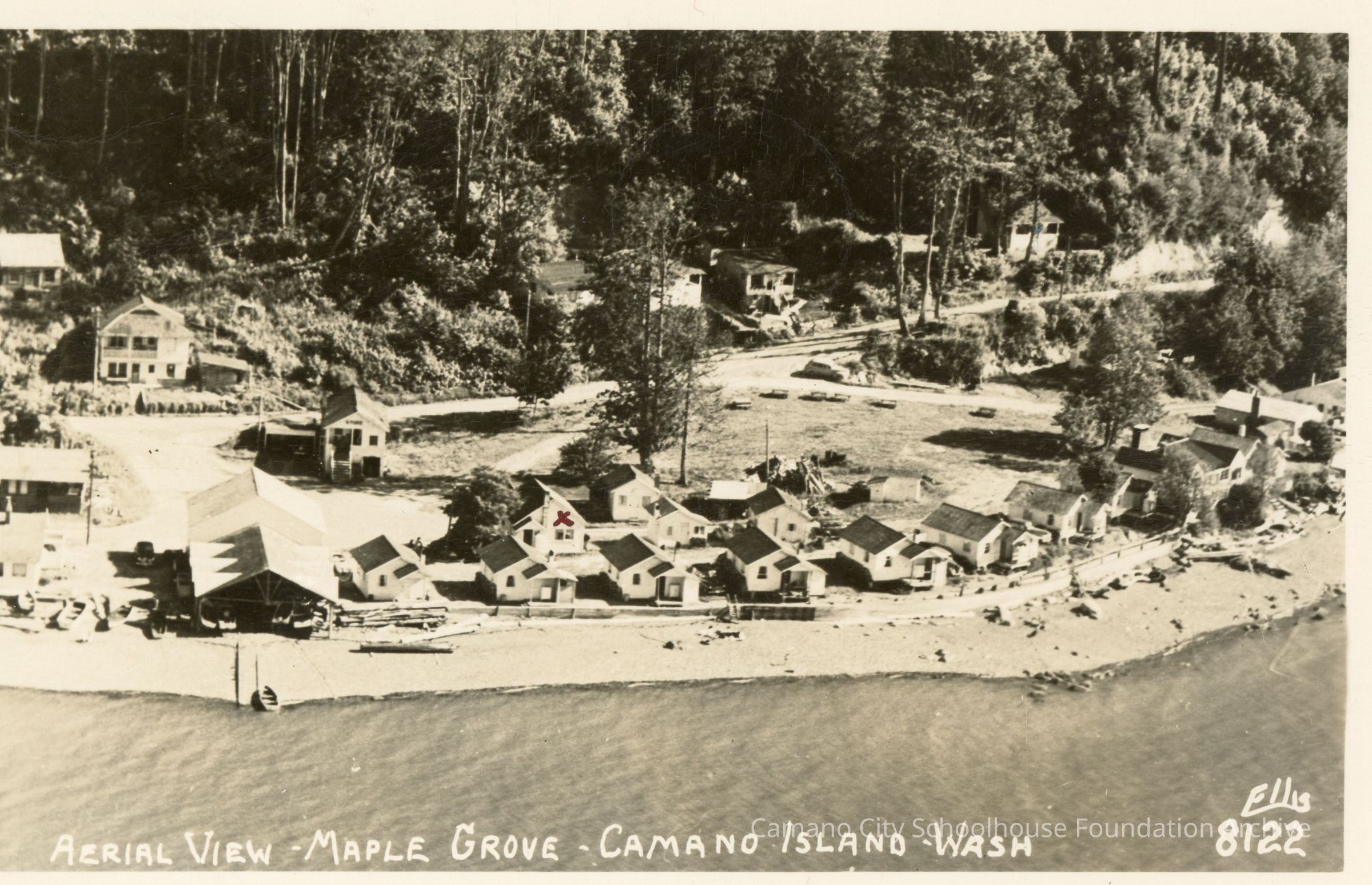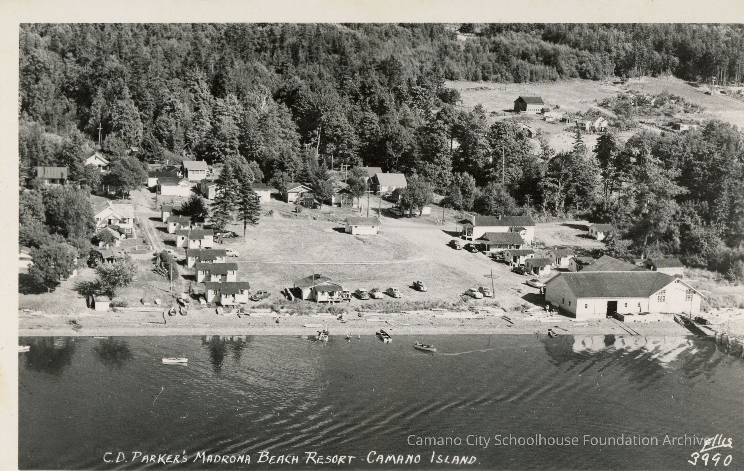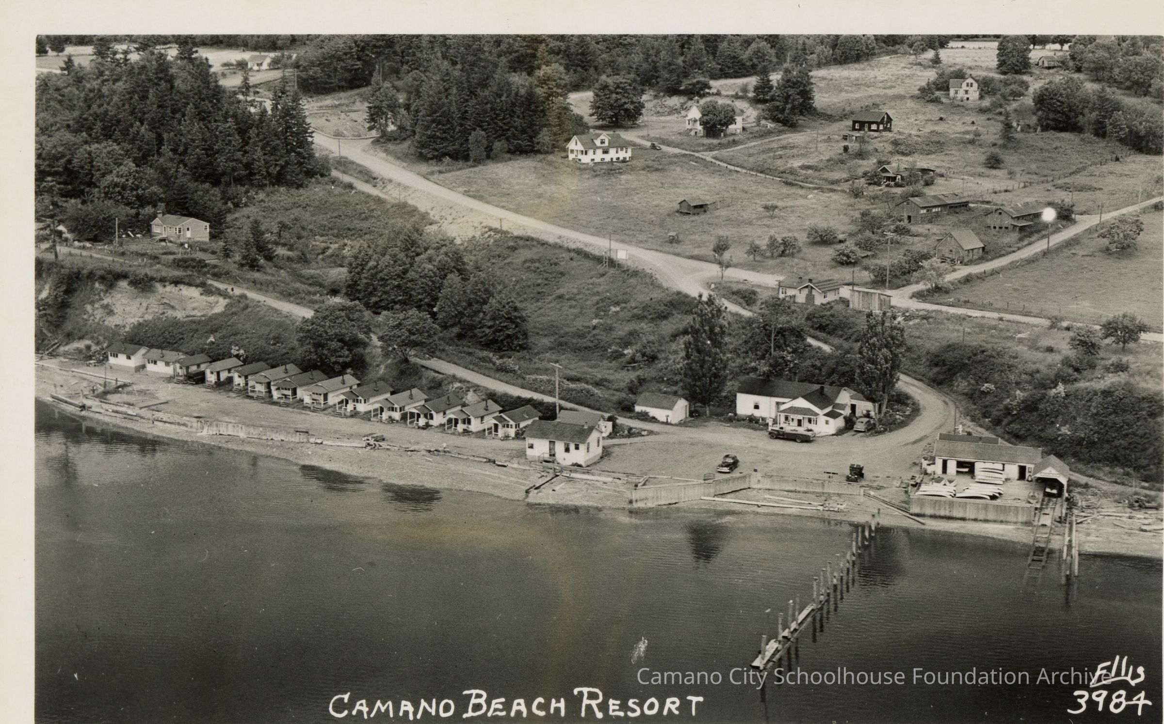 Aerial Black and White Photo of Camano Beach Resort, Ellis #3984, 2023.001.I.A.a.001