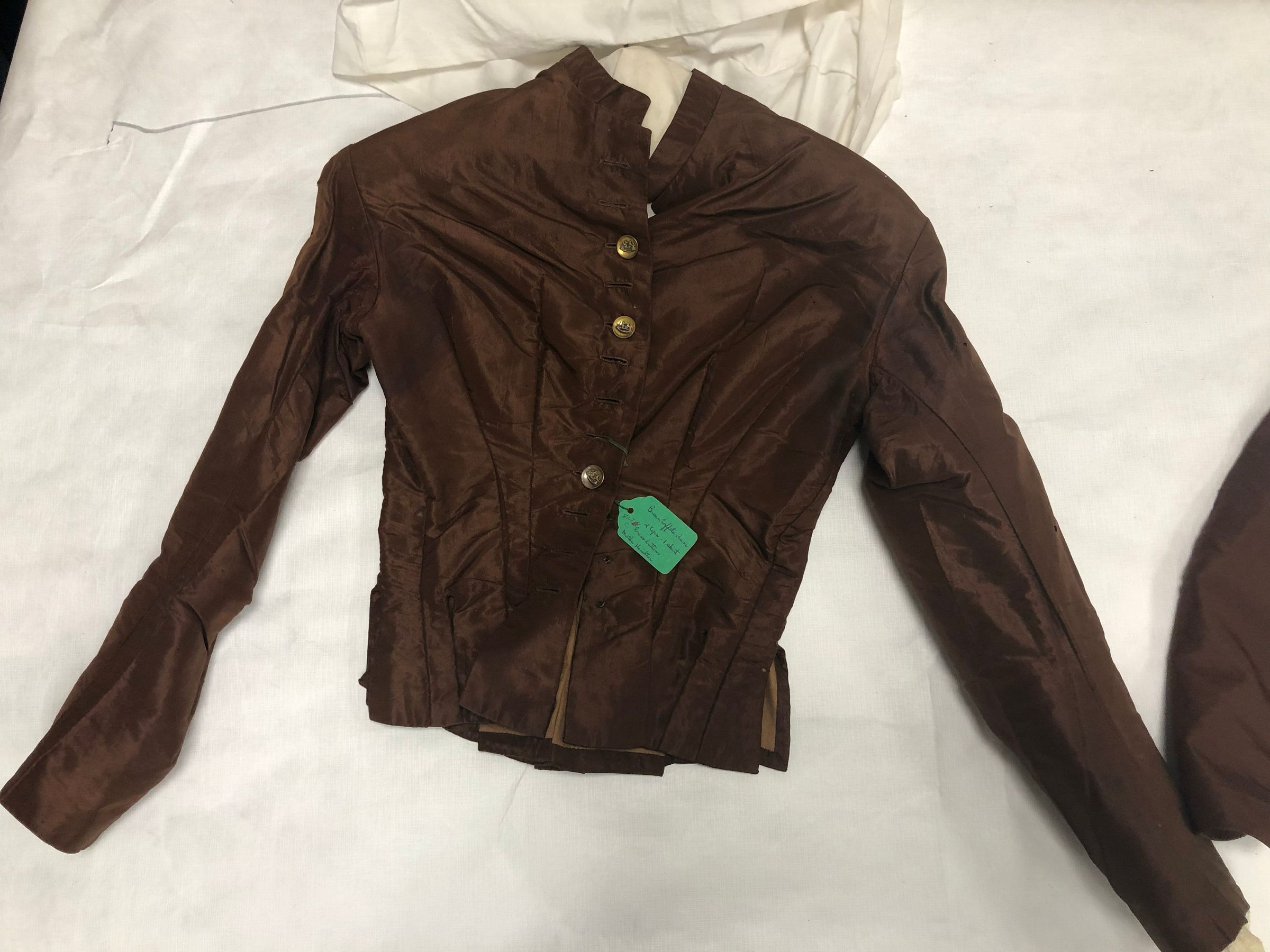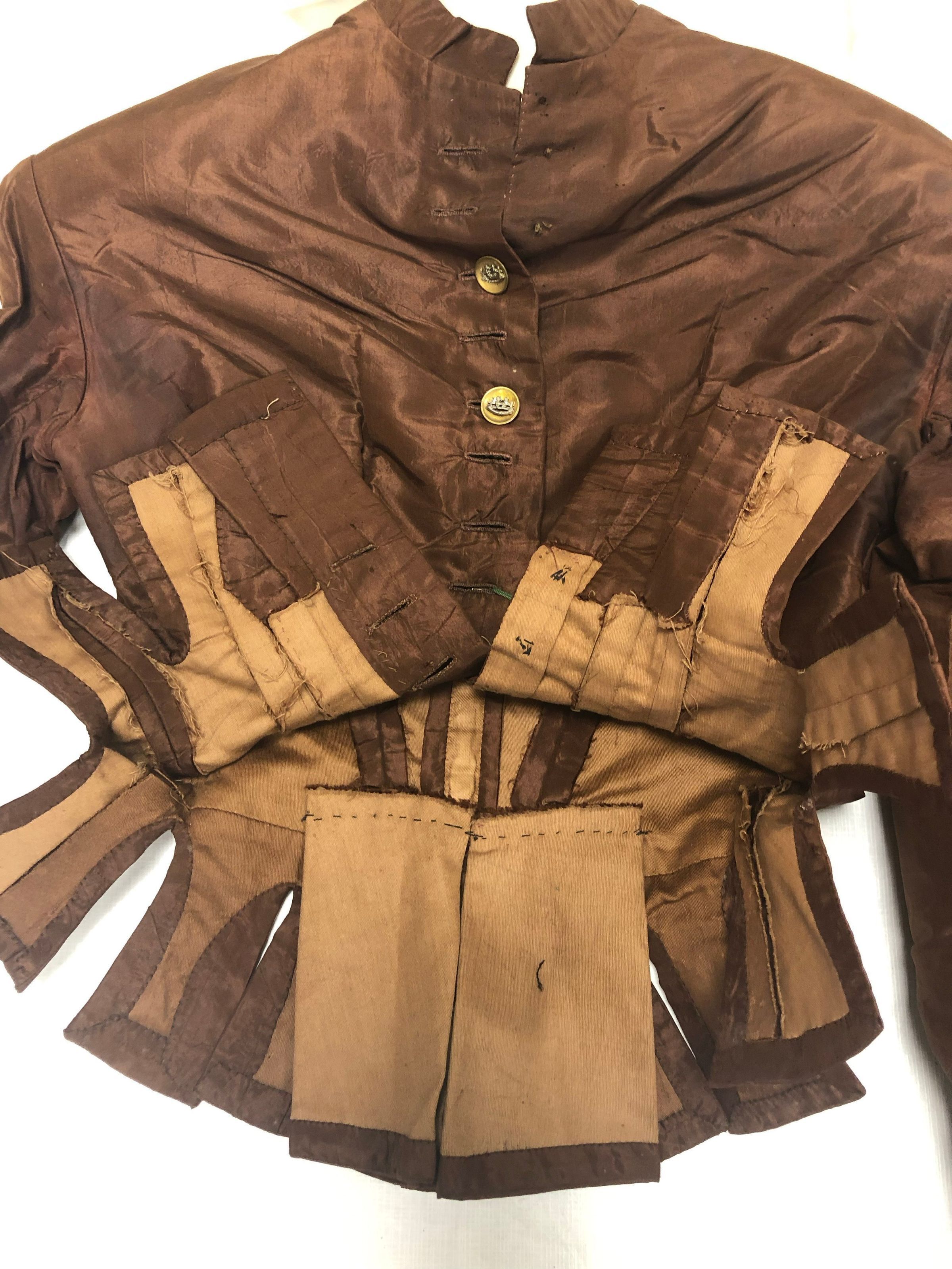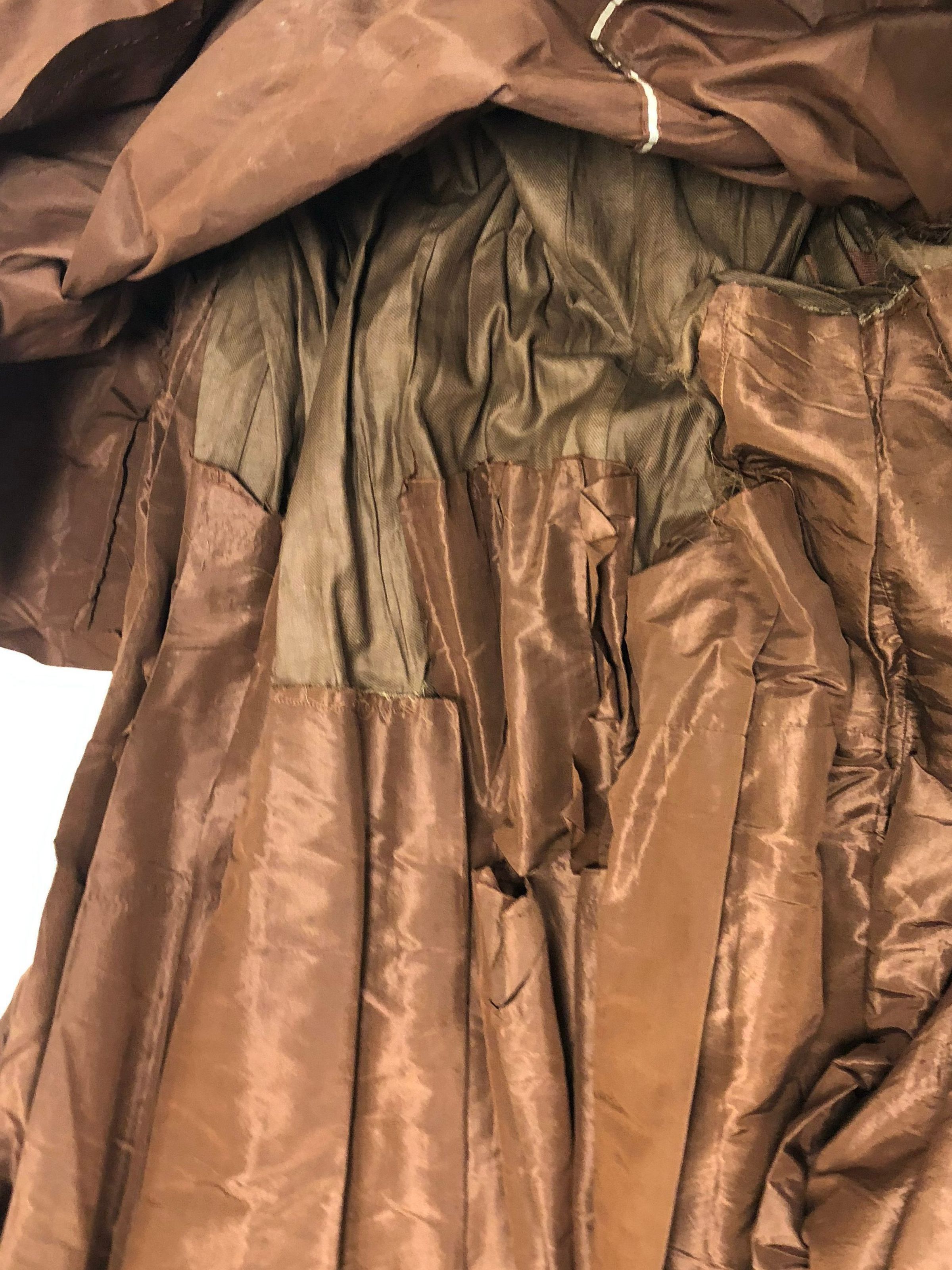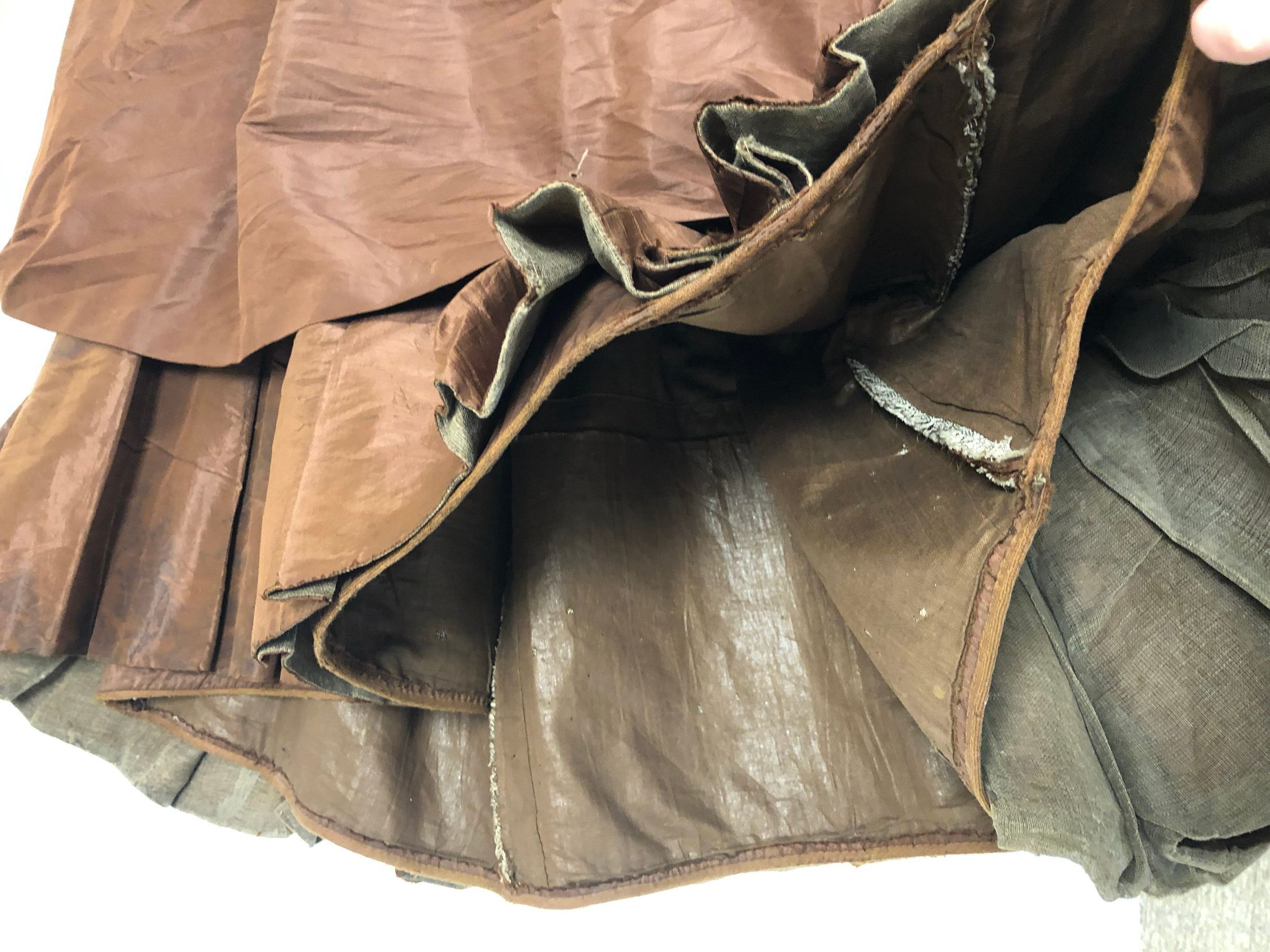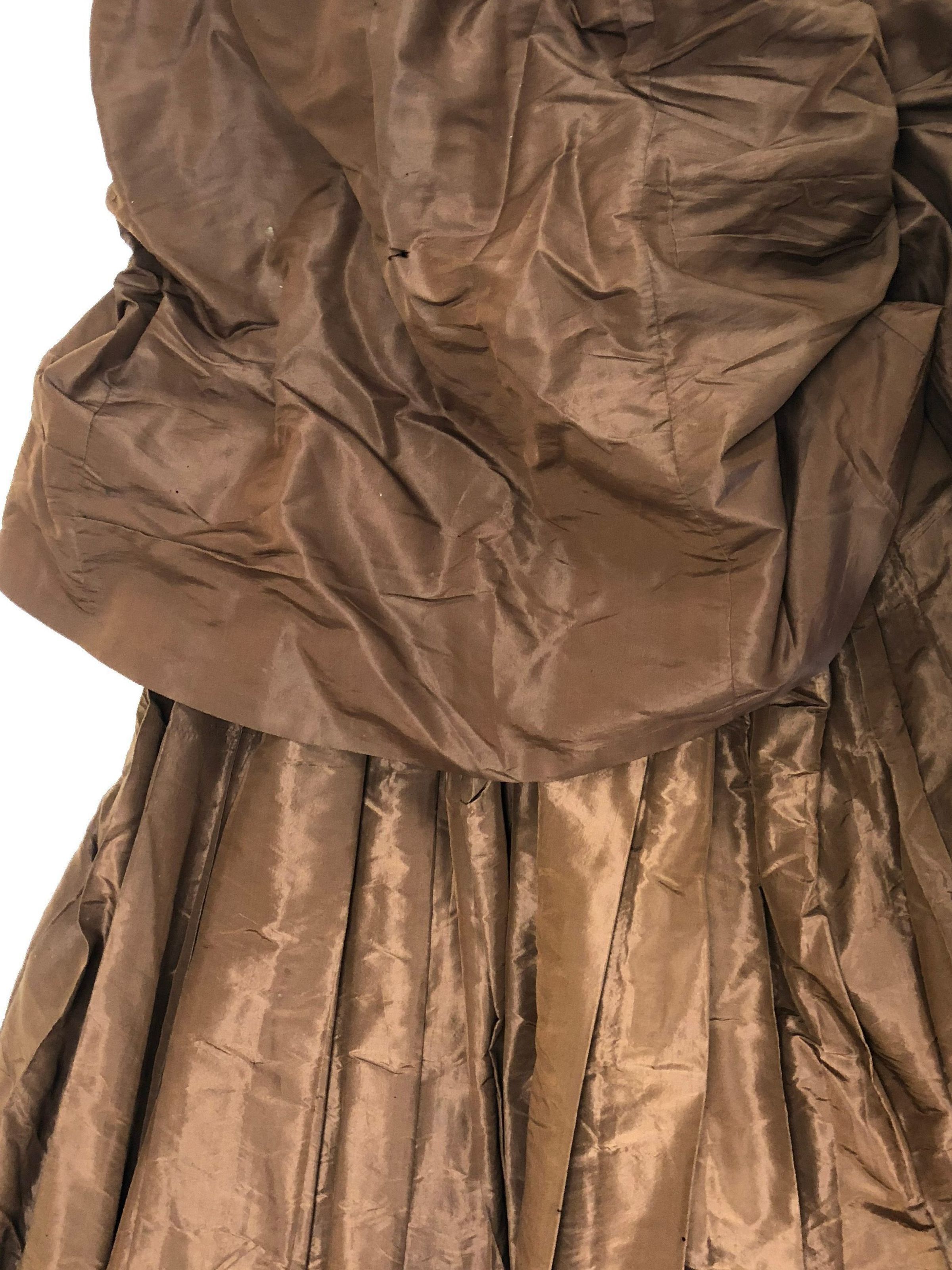Brown Taffeta dress with bass buttons. 2 tops one skirt
