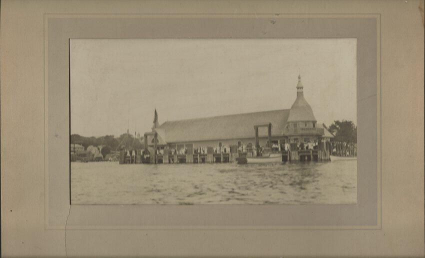 One 8x10" black and white photograph of the Camden steamboat wharf circa 1910. Photograph likely taken by Jay Potter of Camden.Collection