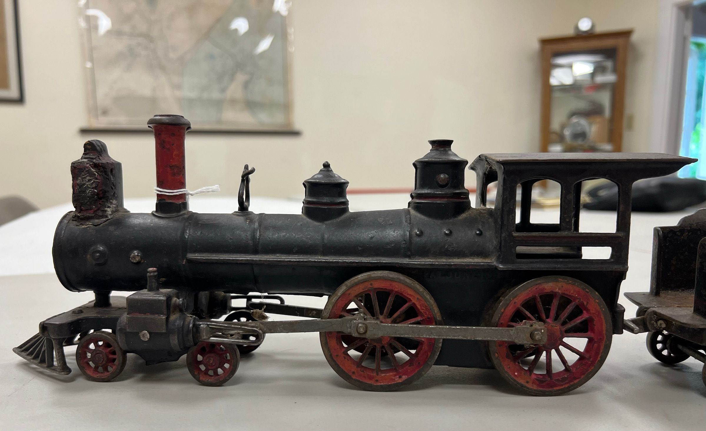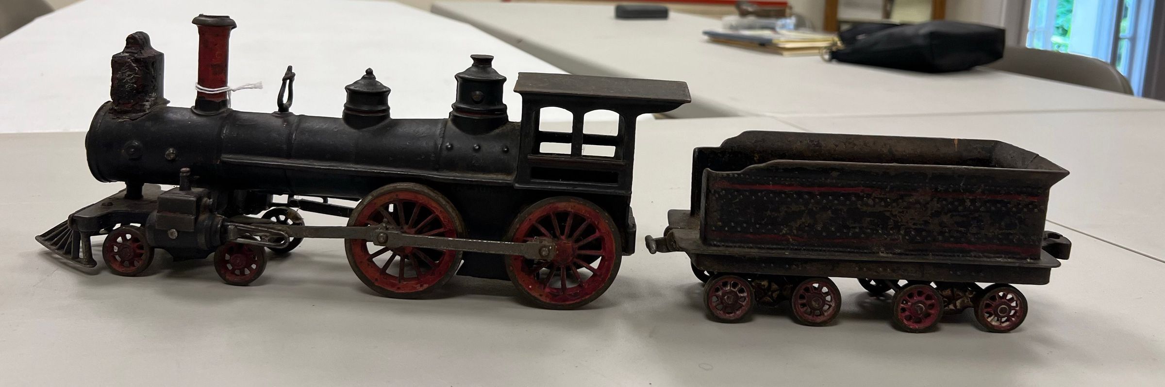 Wilkins Ex. Large 4-Window Tall Stack Cast Iron Loco & Tender, c. 1888/Coal car is 1964.1193