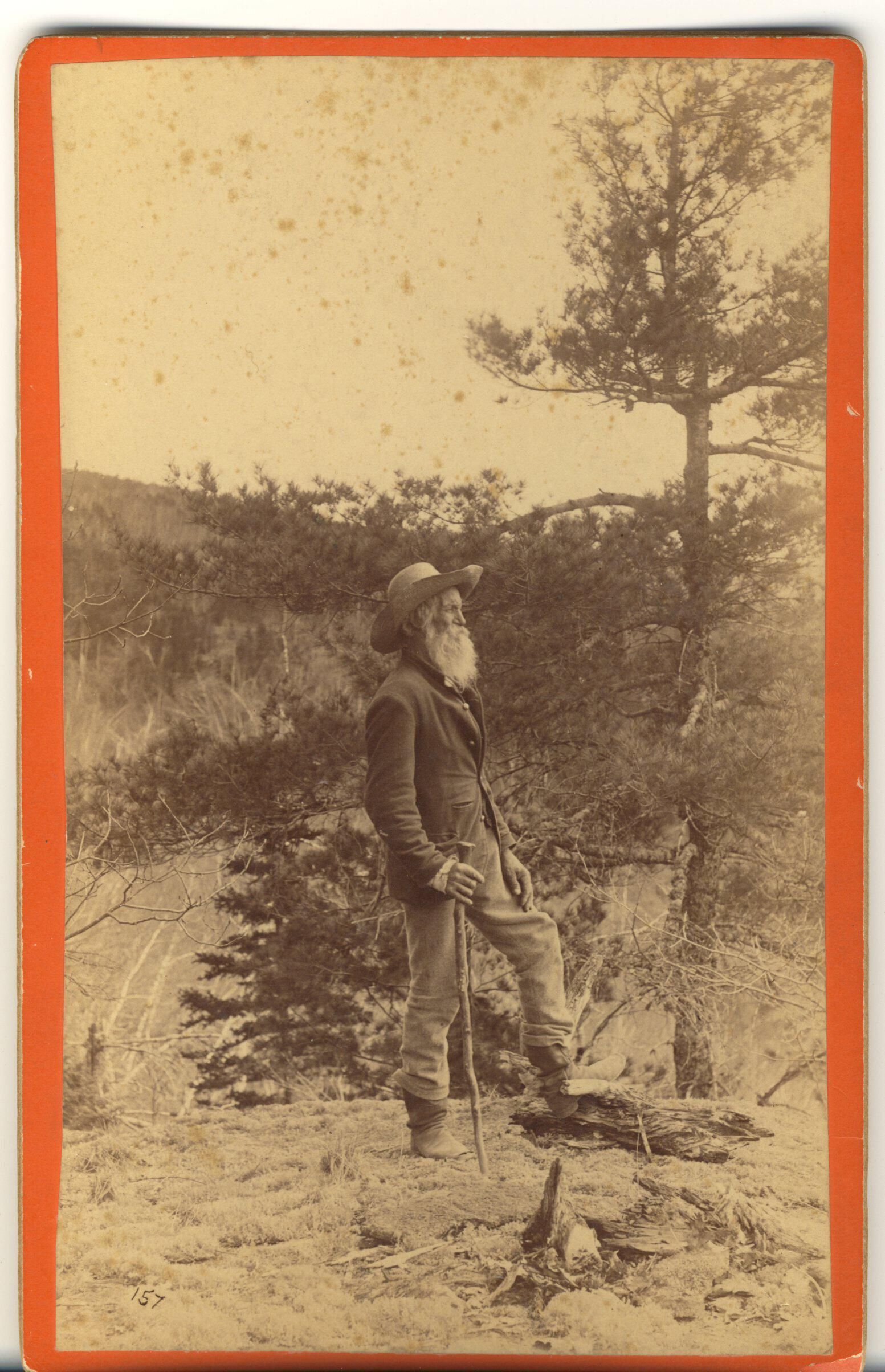 William Barrett standing on a ledge probably on the side of Mt. Megunticook near Megunticook Lake and his farm near the Turnpike Drive He was known as "Wild Bill Barrett" because of his lifestyle and appearance. He was also known as the Camden Mountaineer.Collection