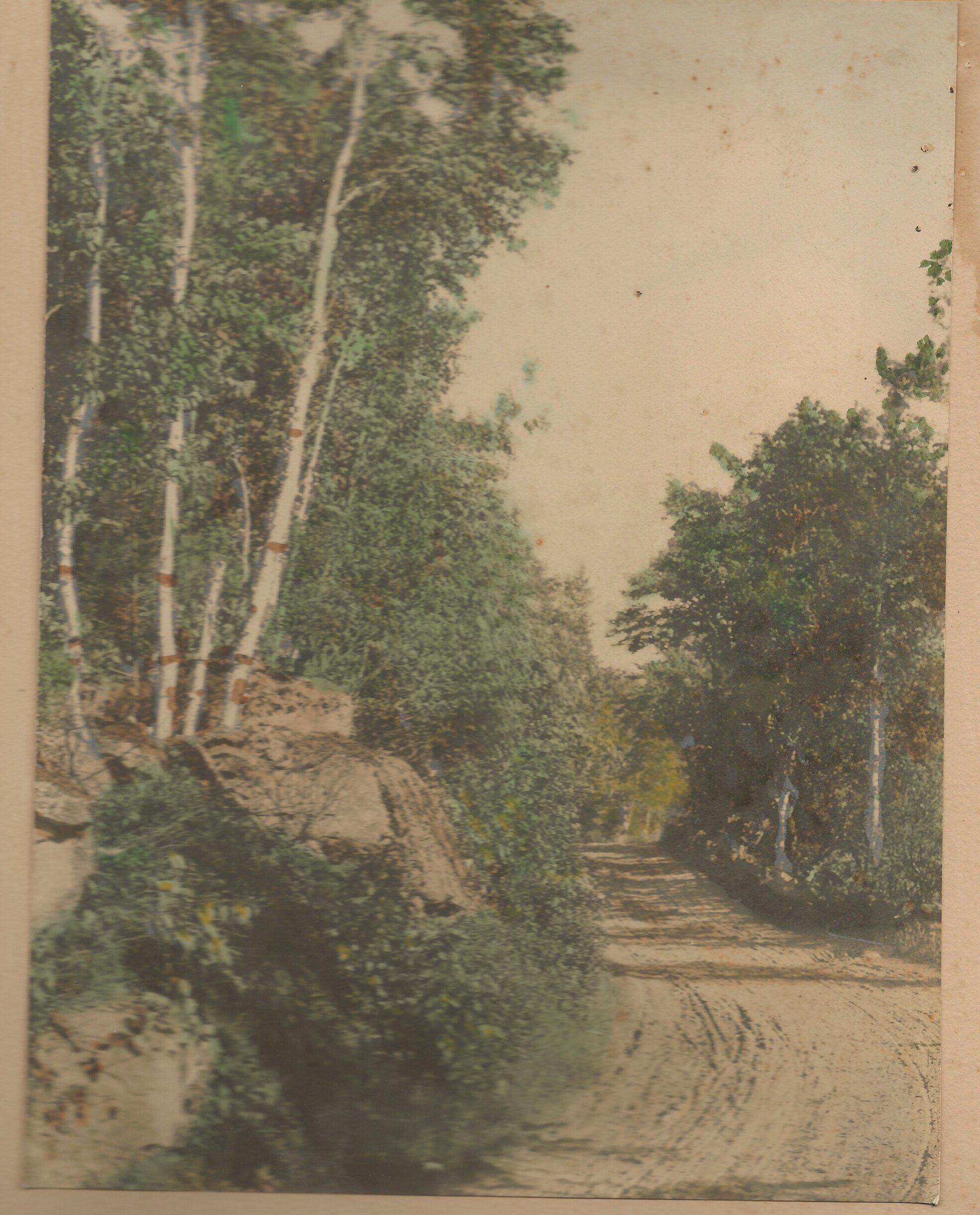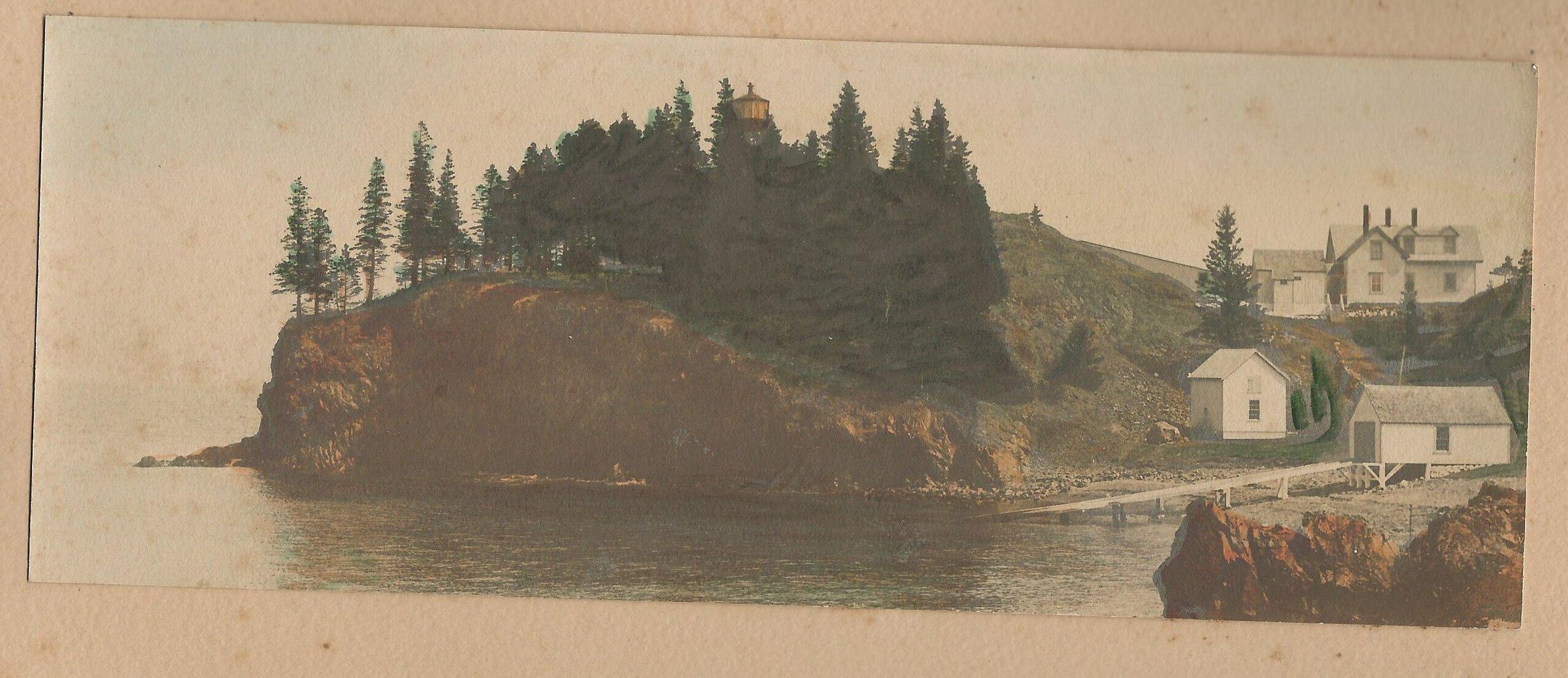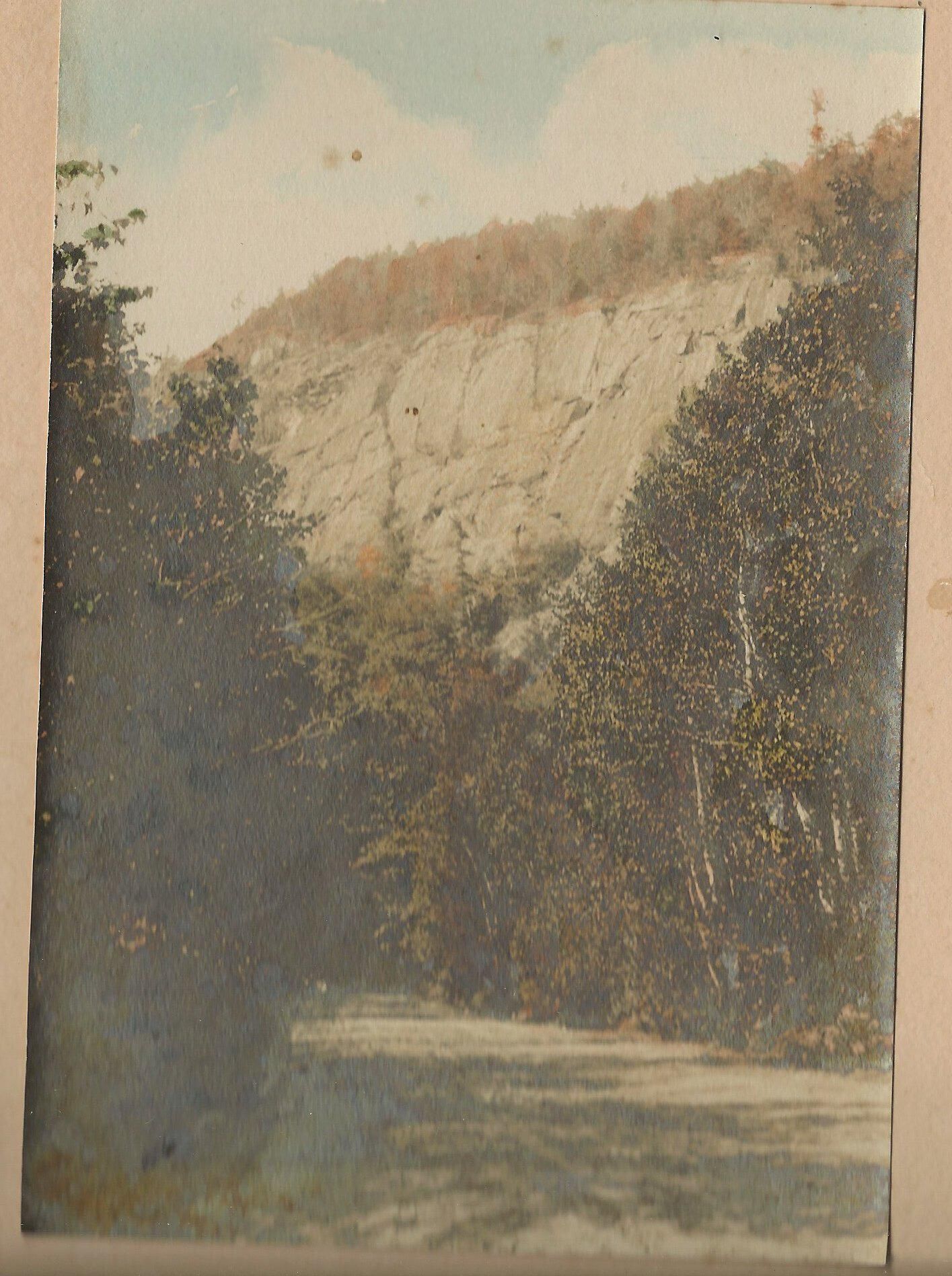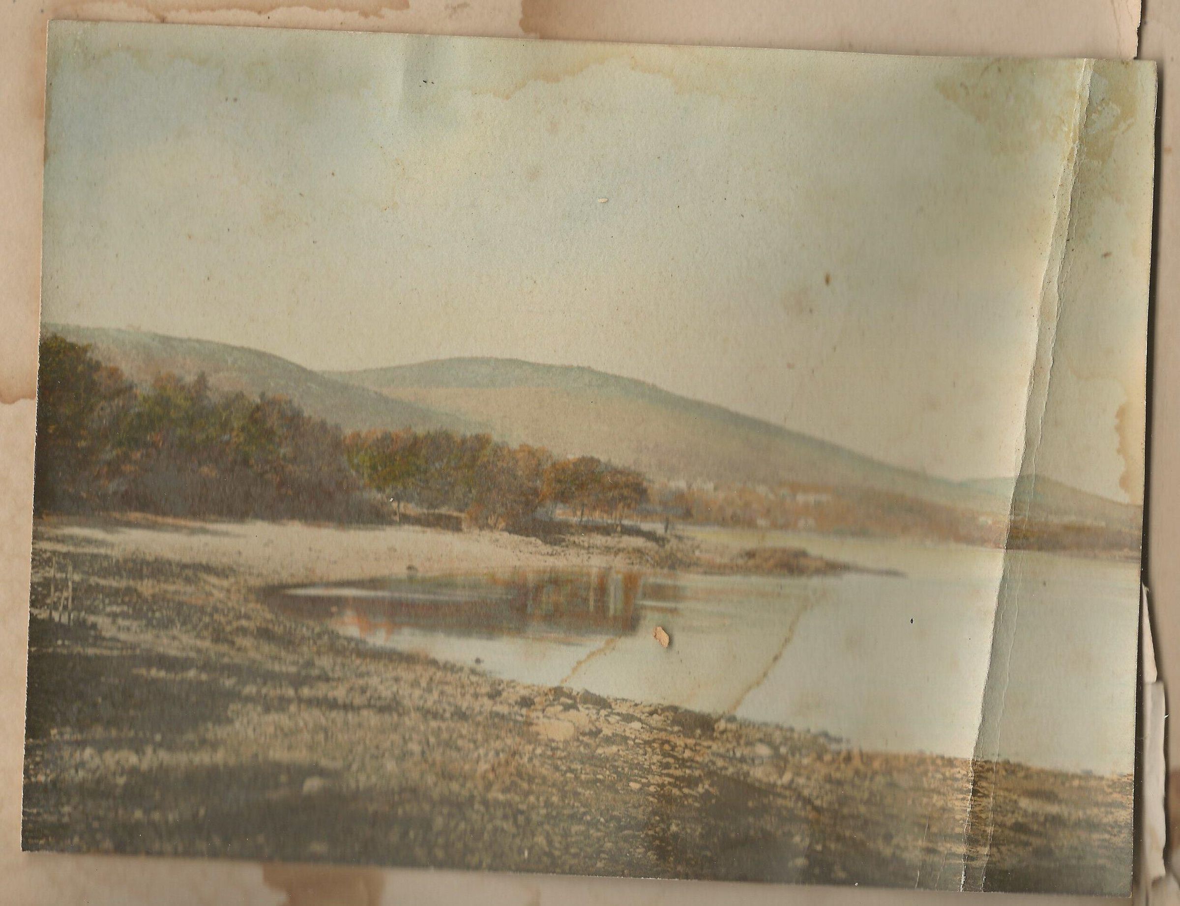 7 hand colored photos of Camden and Owls Head Maine mounted on piece of poster board