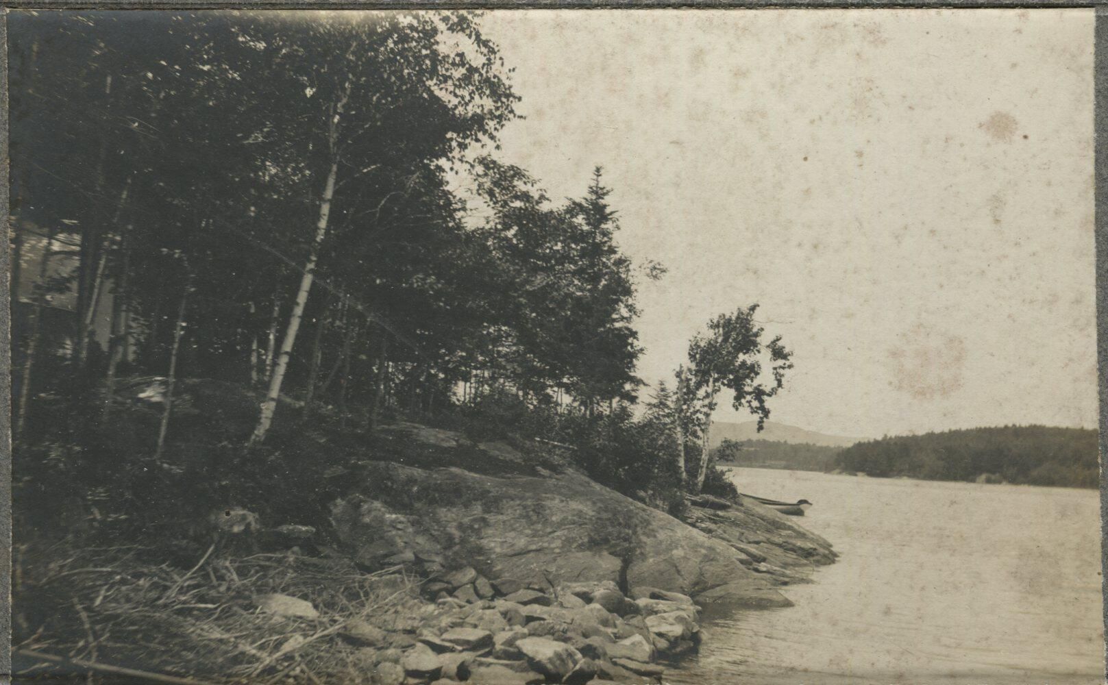 photo of a shoreline possibly at Megunticook Lake, ledges are in foregroundCollection