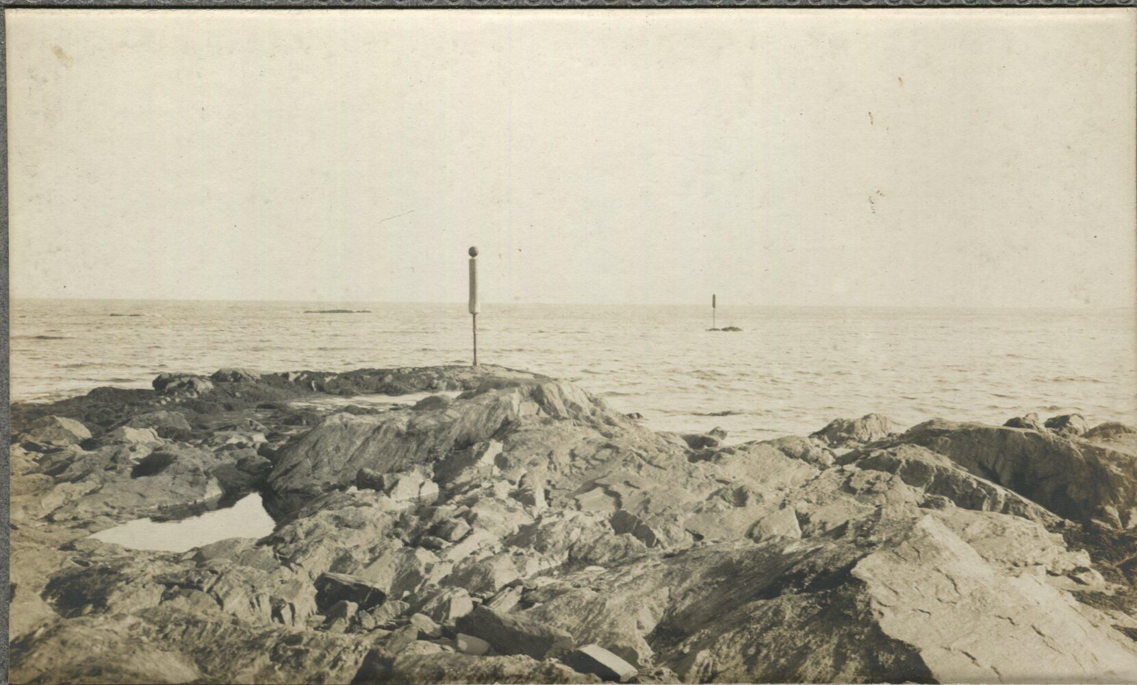 photo of ledges and buoy markers9 spindles) possibly NE Point of Sherman's Point or off the Graves of Beauchamp PointCollection