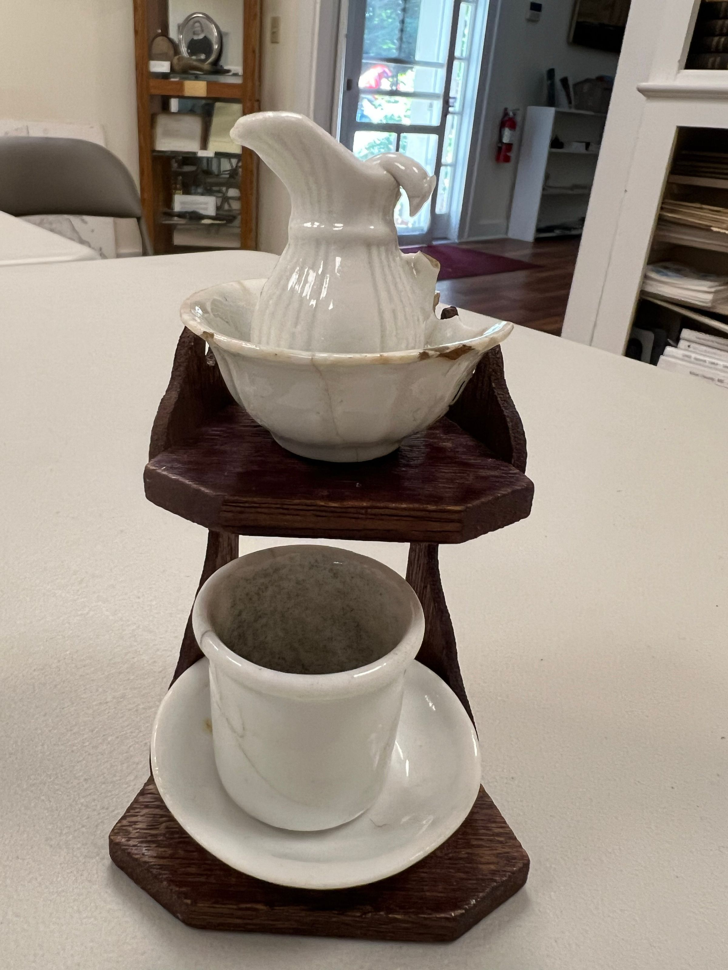 Crockery pitcher and bowl may be 1973.131A Belonged to Myrtle Blake.Acquisition