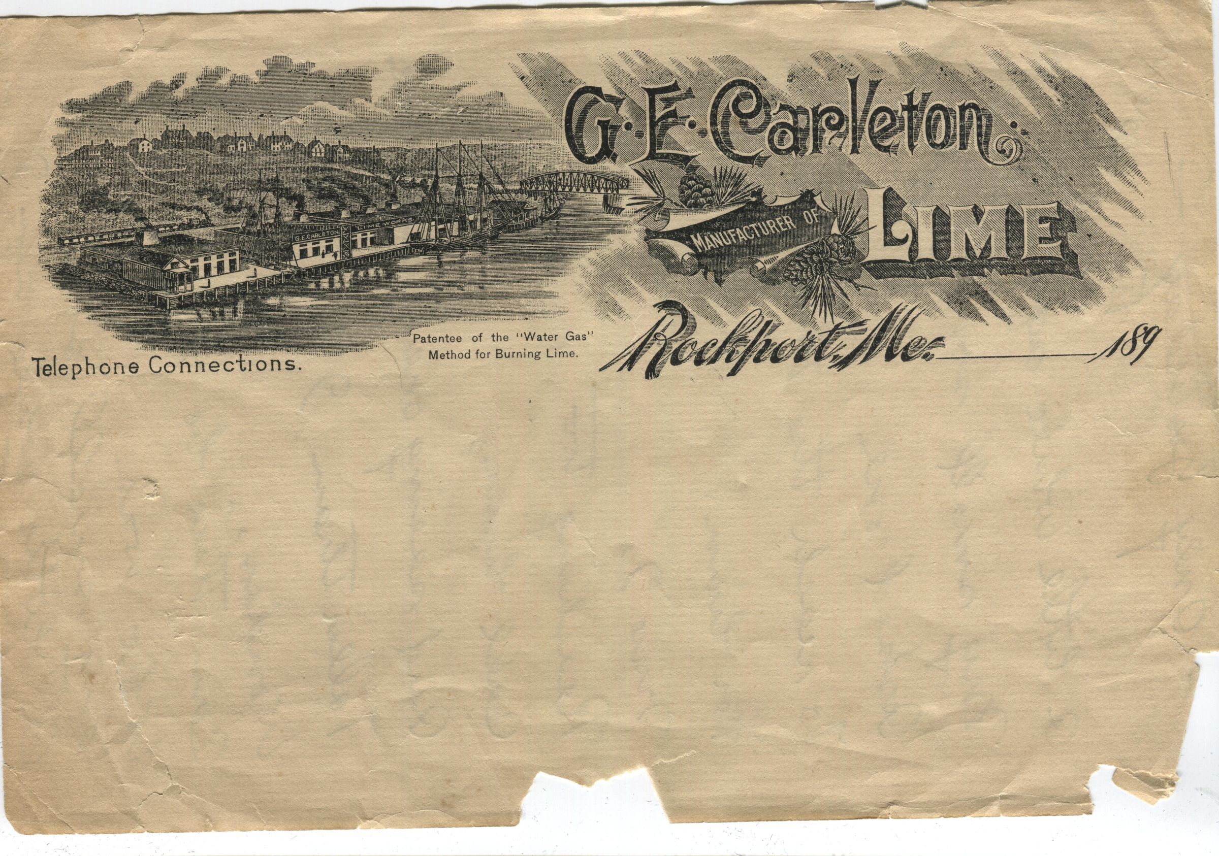 Blank invoice from the G.E. Carleton Company, Manufacturers of Lime, Rockport, Maine.