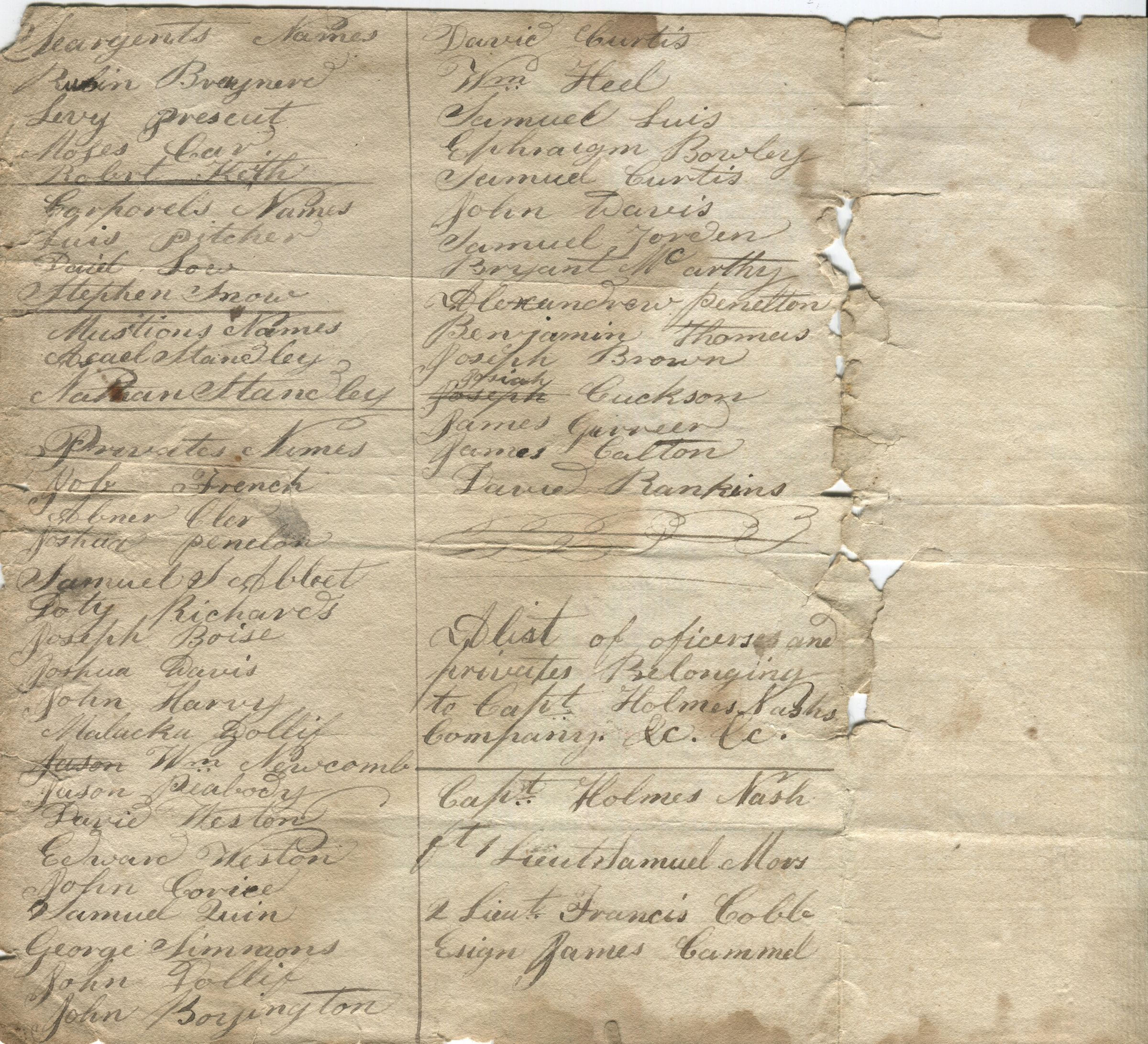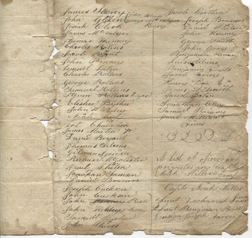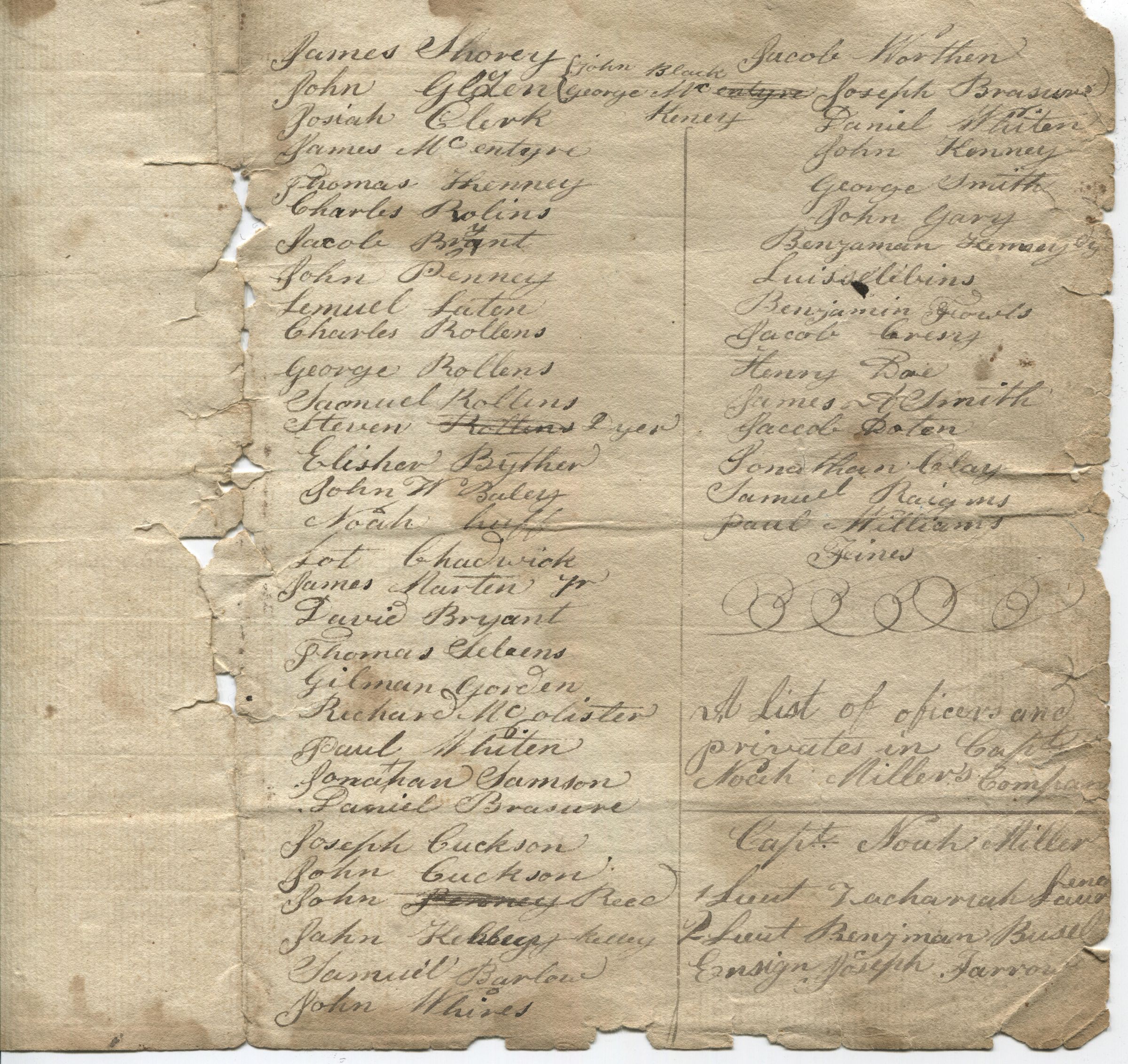 List of officers and privates in Captain Noah Miller's company and Captain Holmes Nash's Company, circa 1812.Collection