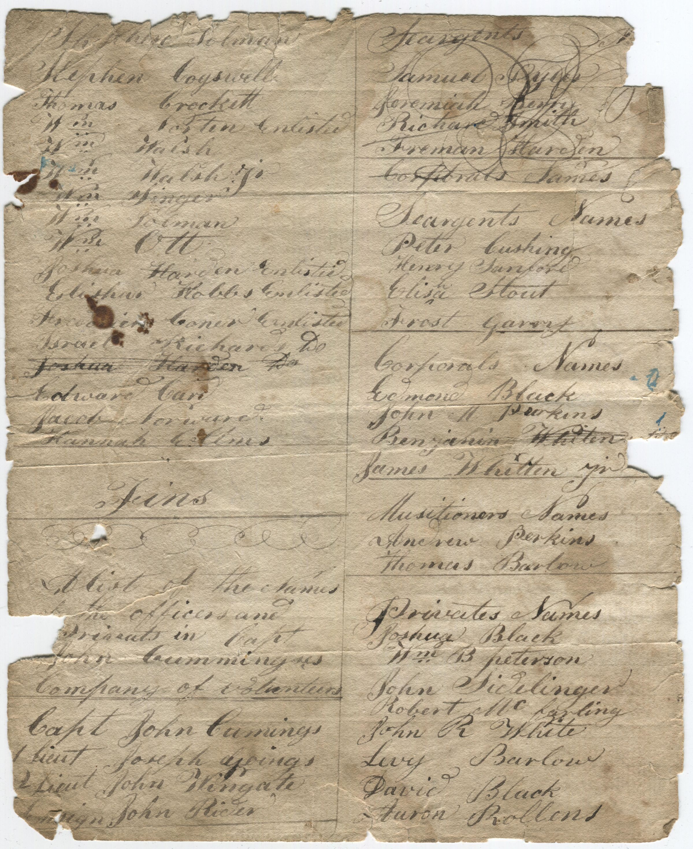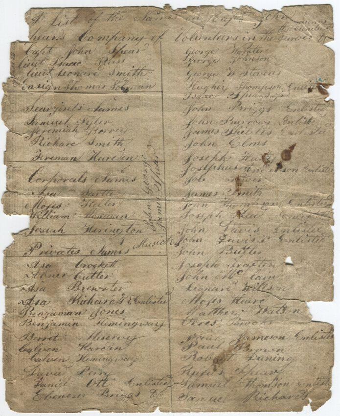 A list of the names of the Officers and Privates in Captain John Cumming's Company of Volunteers, and in Capt. John Spear's Company of Volunteers.Collection