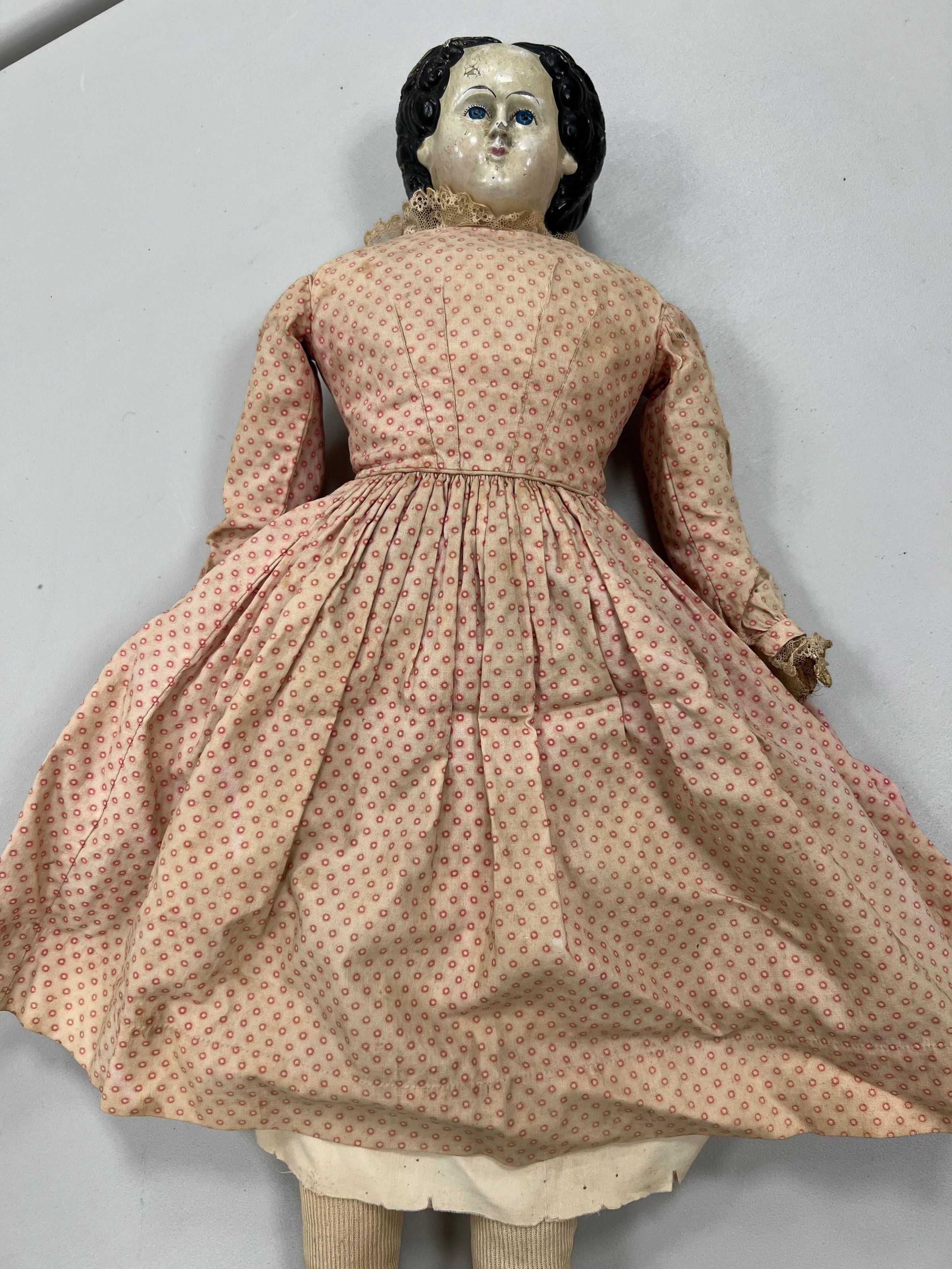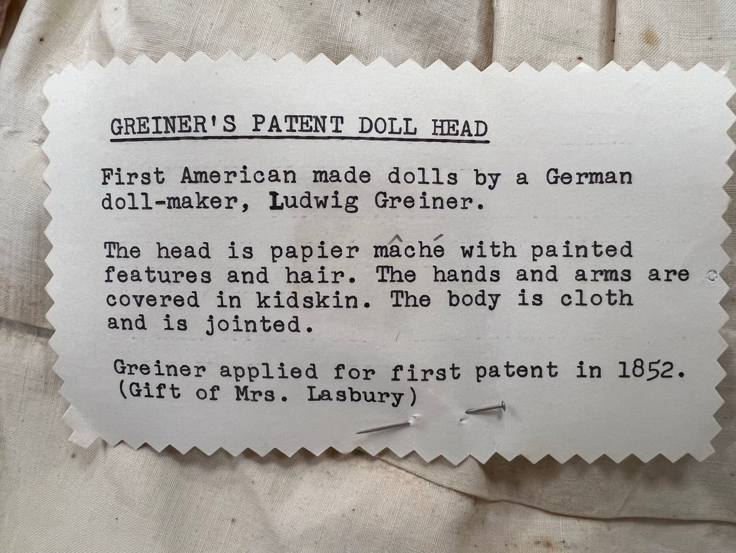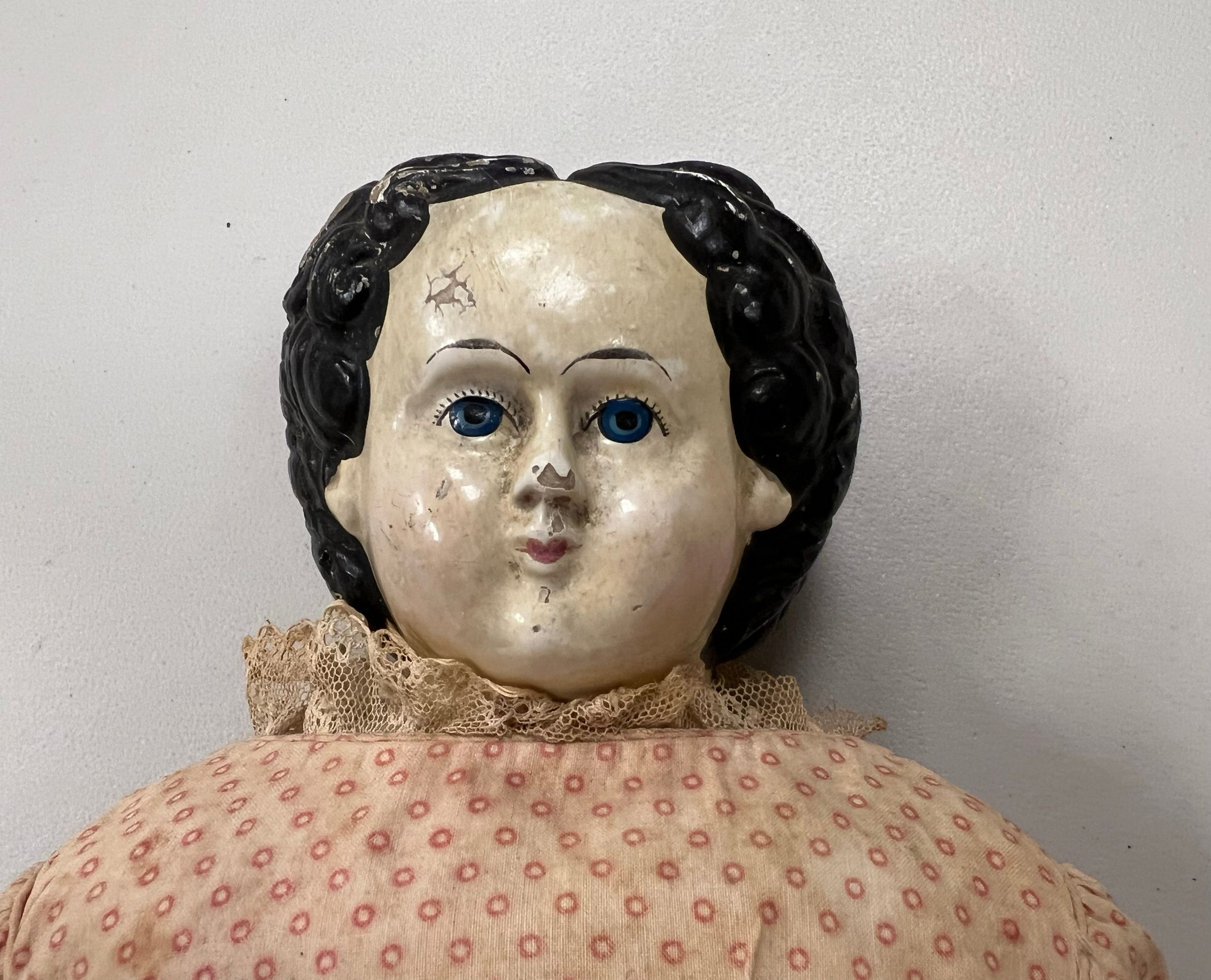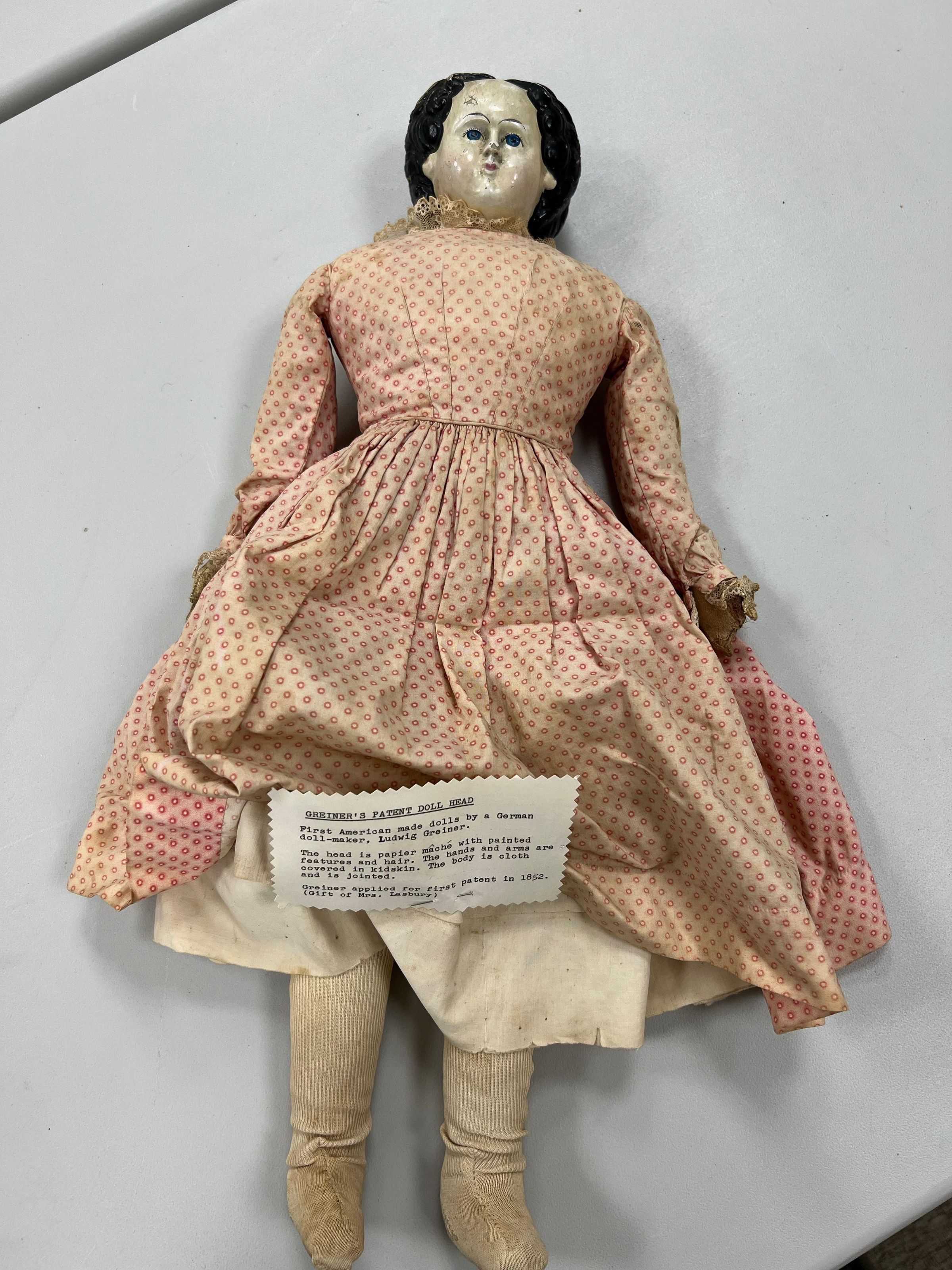 Doll with black hair, blue eyes, who belonged to Mrs. William Justice’s grandmother grandmother of Philip L. Lee and Cecilia C. LasburyAcquisition