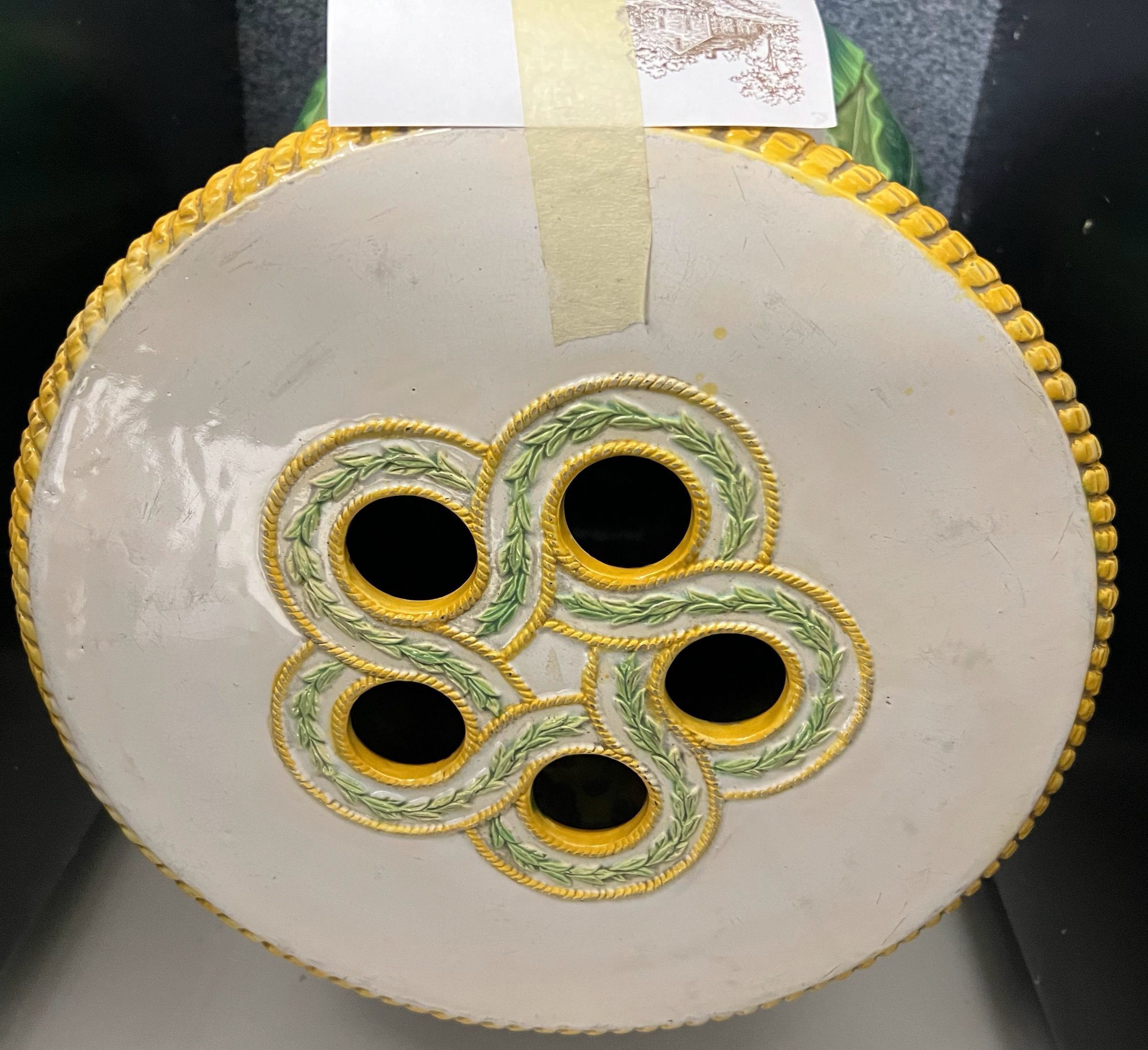 Made by George Jones circa 1882. Reference: https://majolicasociety.com/garden-seats/