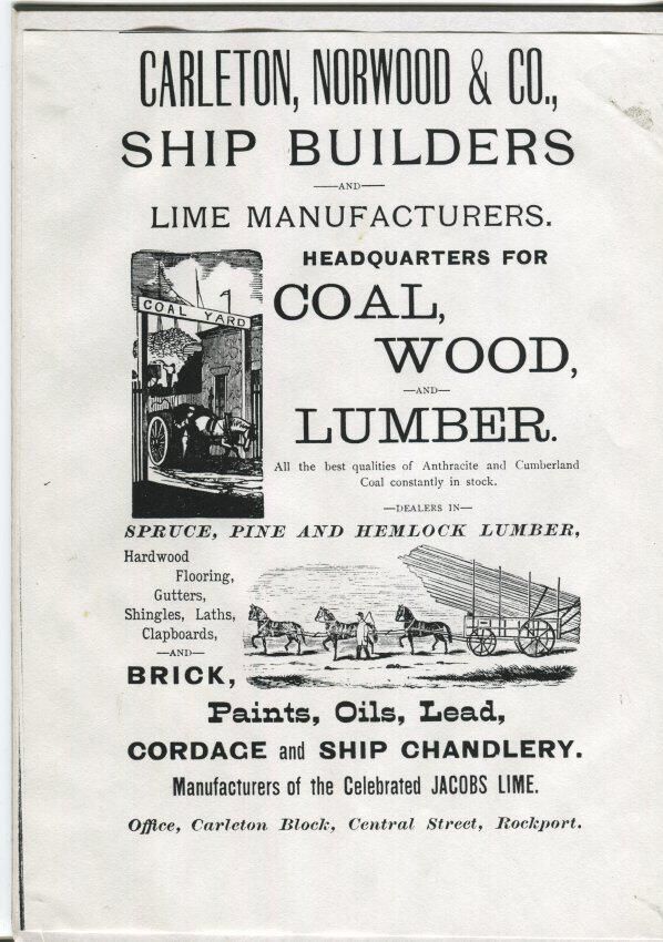 Advertisement for Carleton, Norwood & Co. Ship Builders