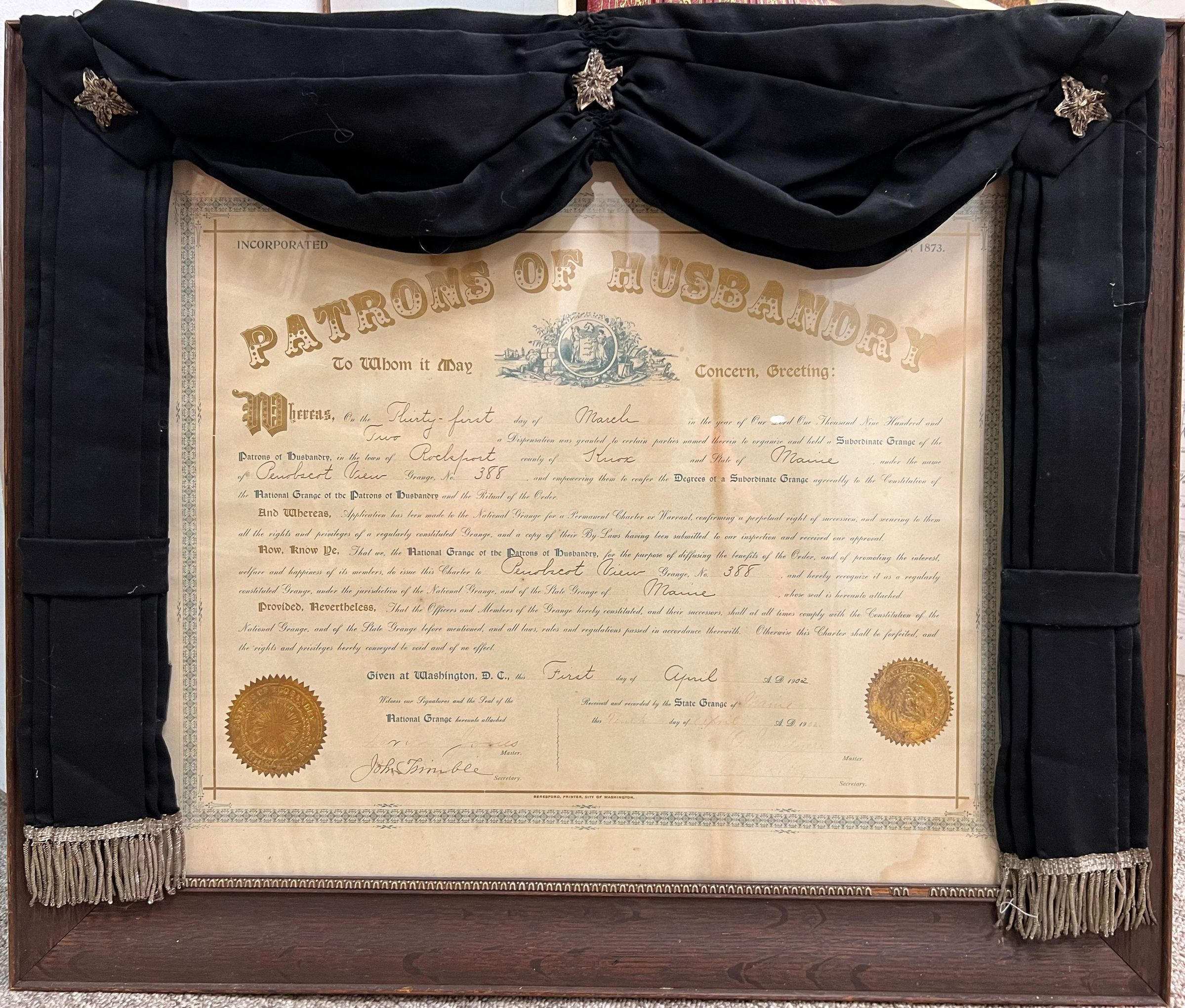 Patrons Of Husbandry Certificate. Penobscot View Grange #388, Rockport ME