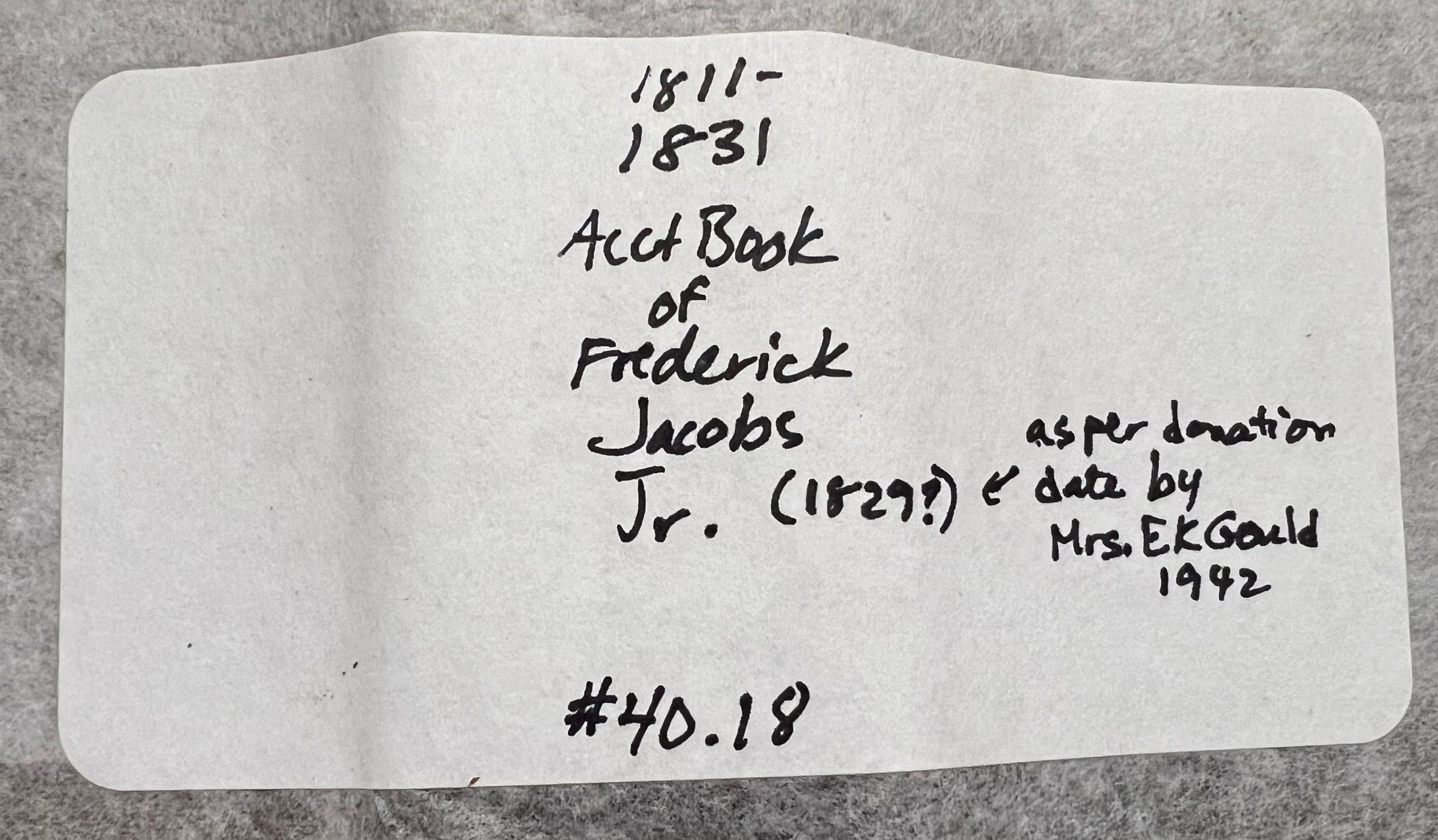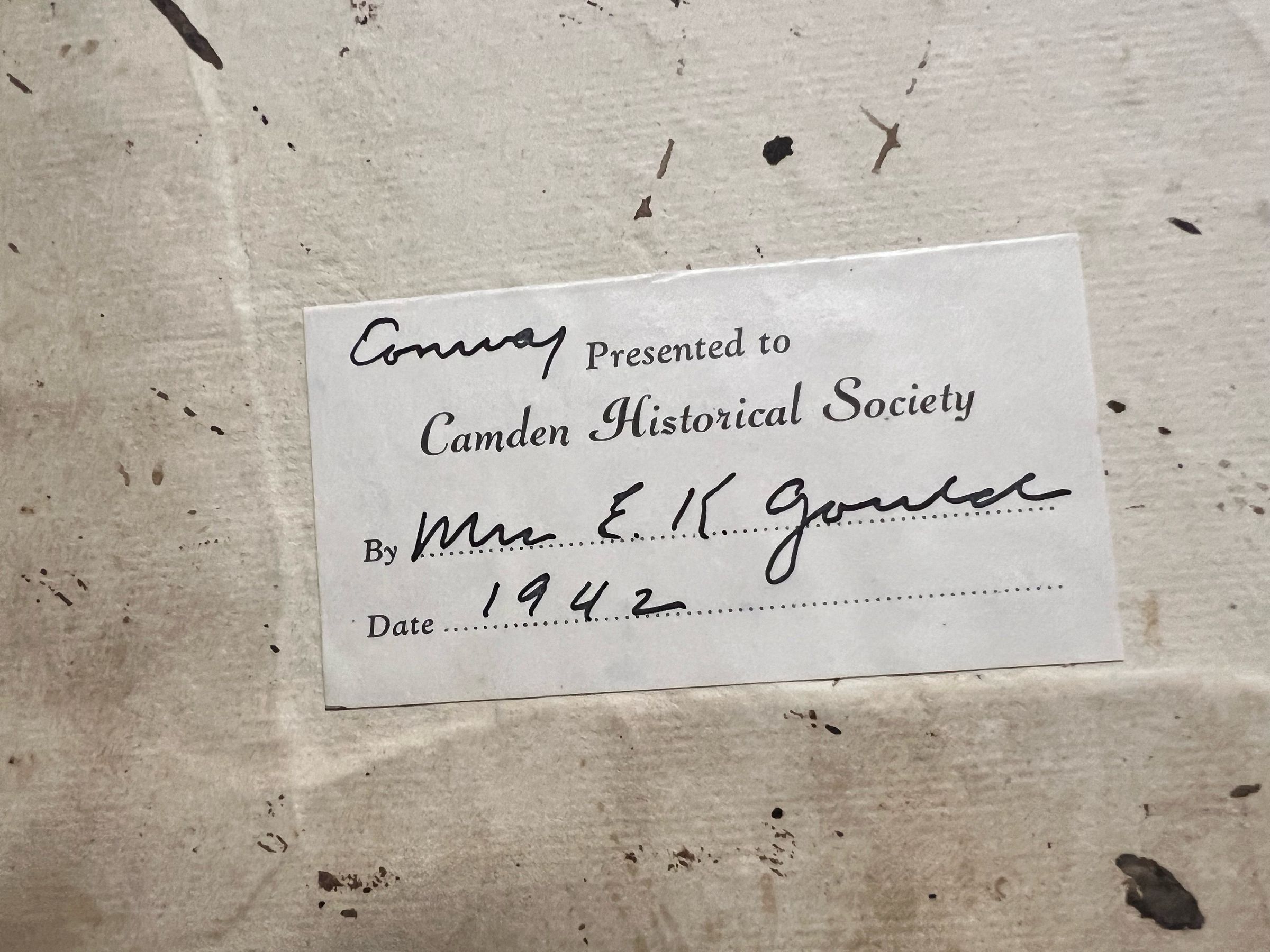 Mrs. E.K. Gould 1942 (donor note an 1829 date)