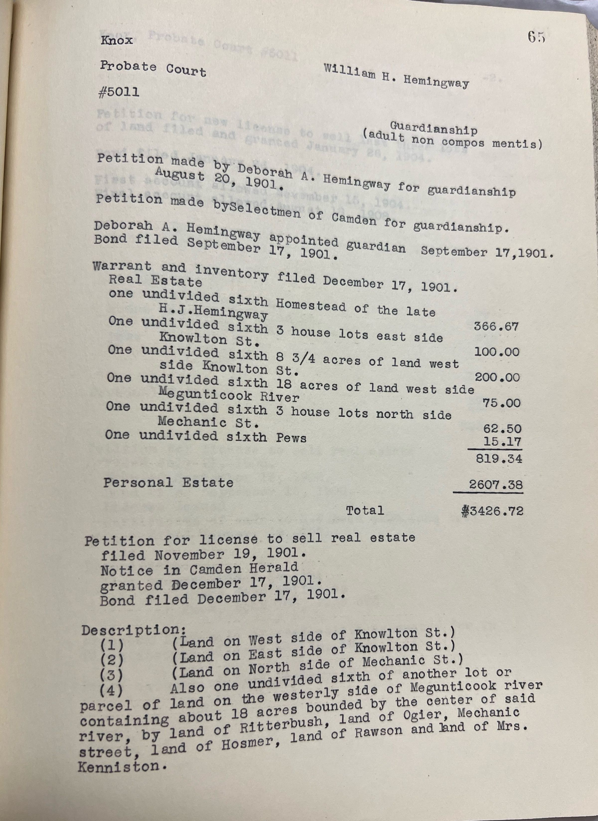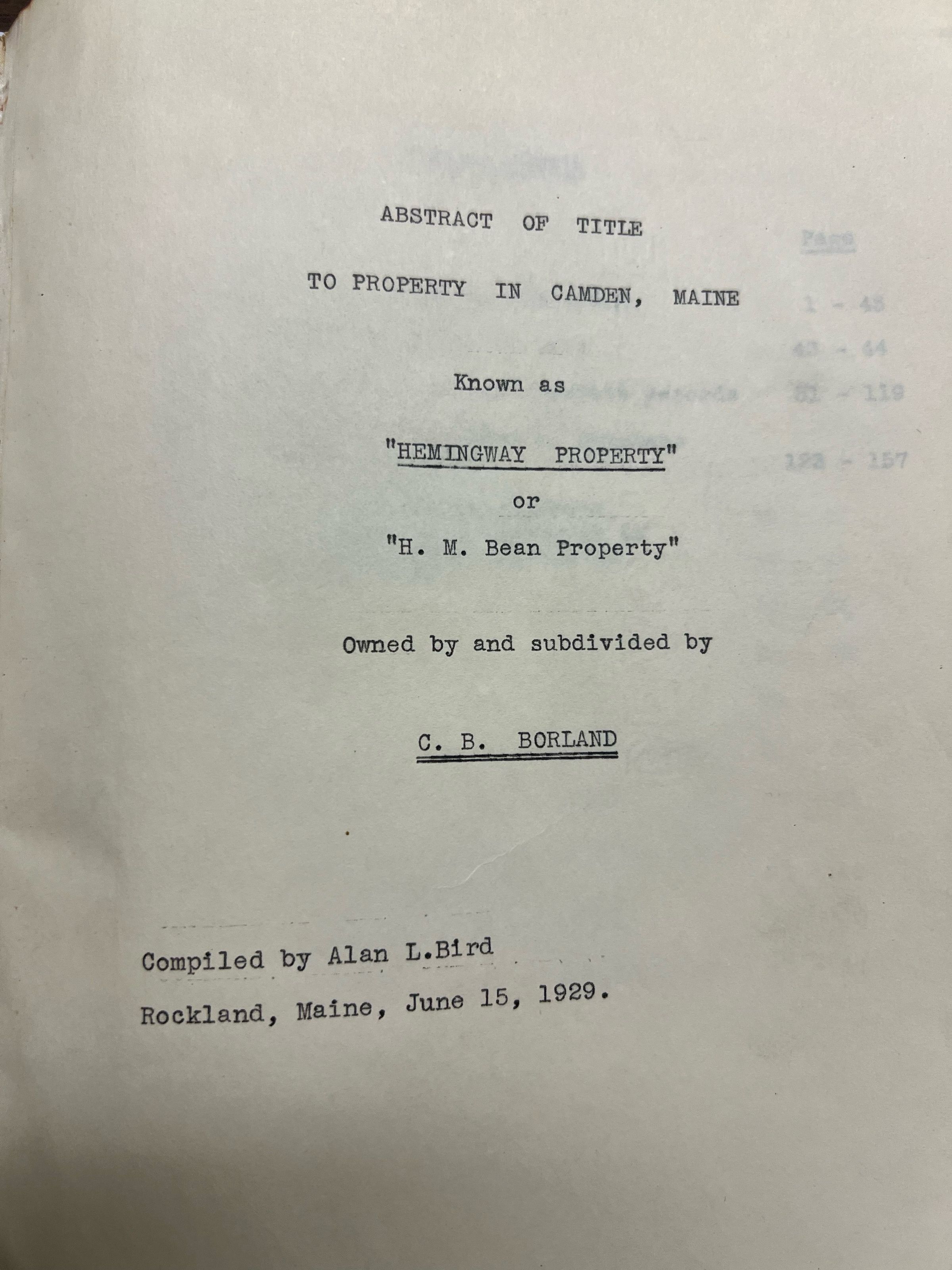 Abstract of Title to Property in Camden, Maine “Hemingway Property or H.M. Bean Property