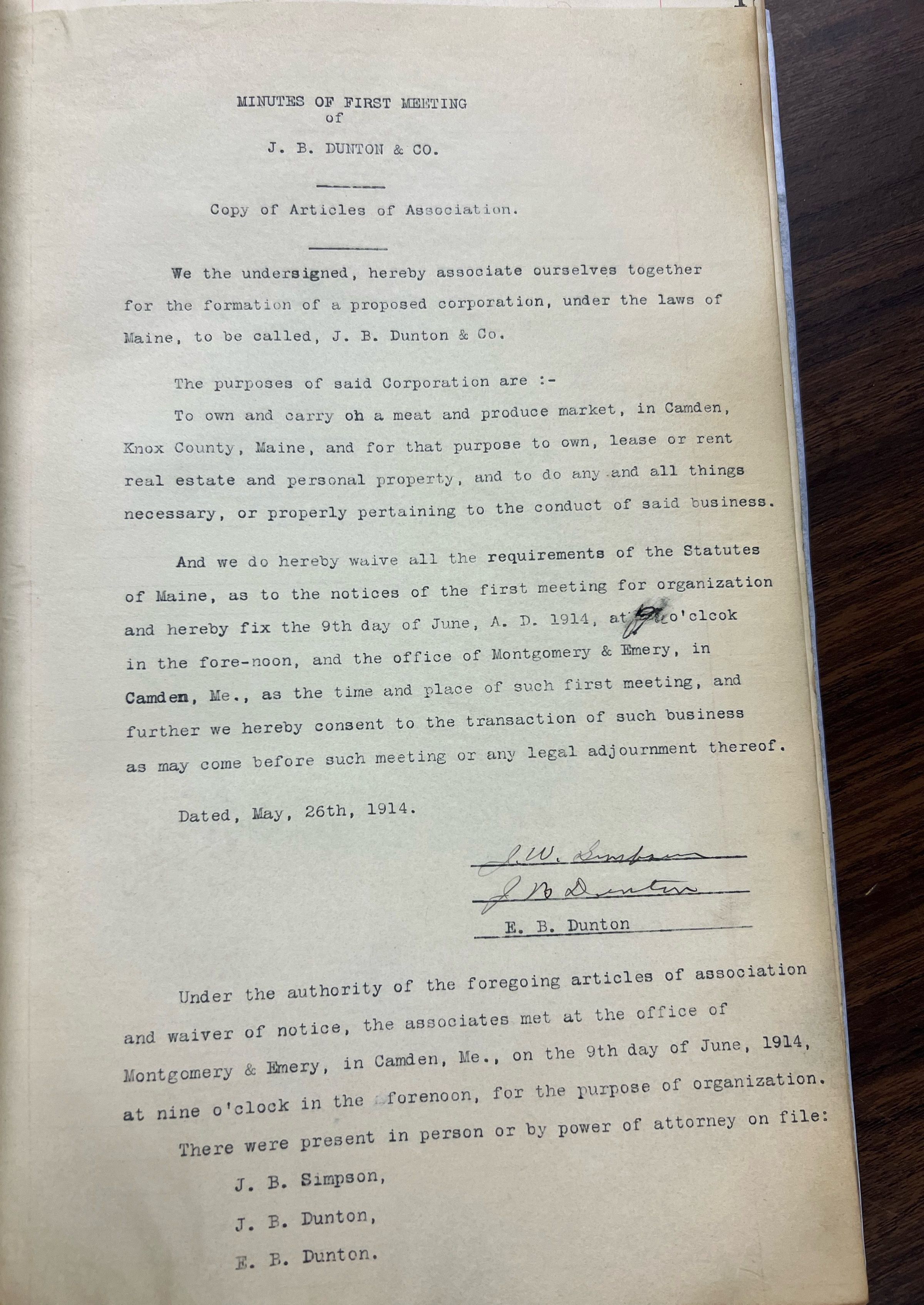 J.B. Dunton Company Records 1914