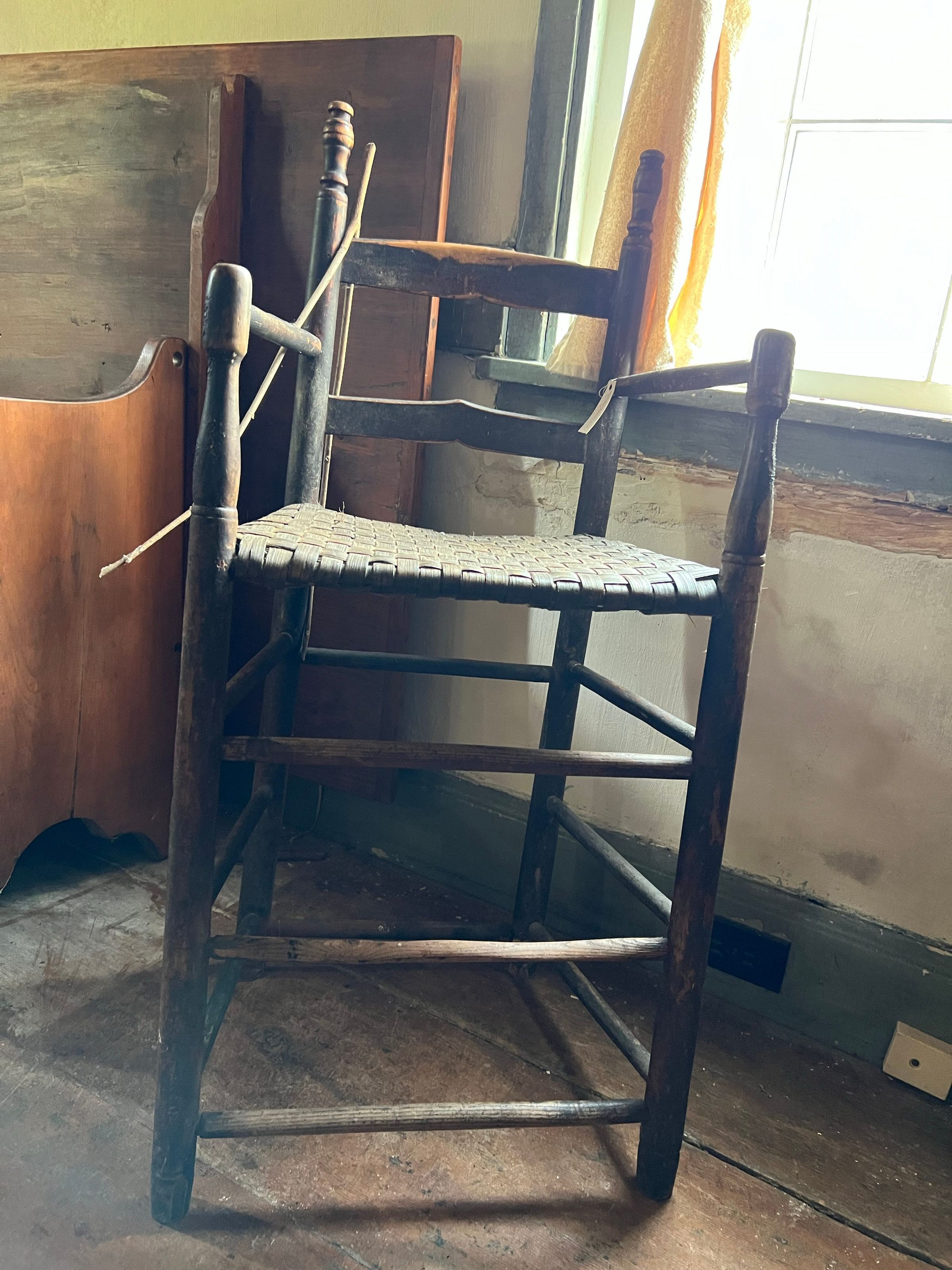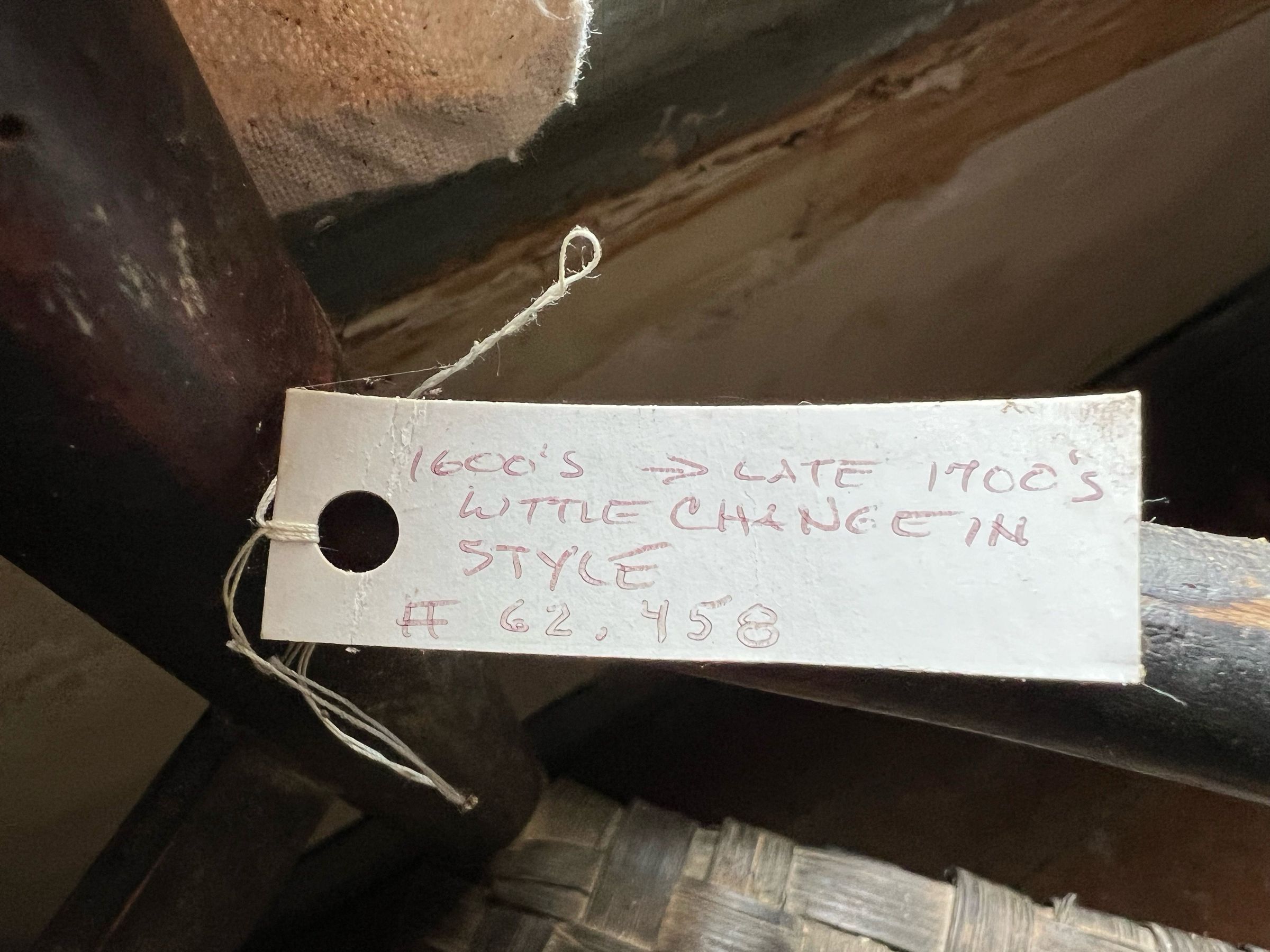 Wooden slats, woven seat, flat wide reed 1600-late 1700