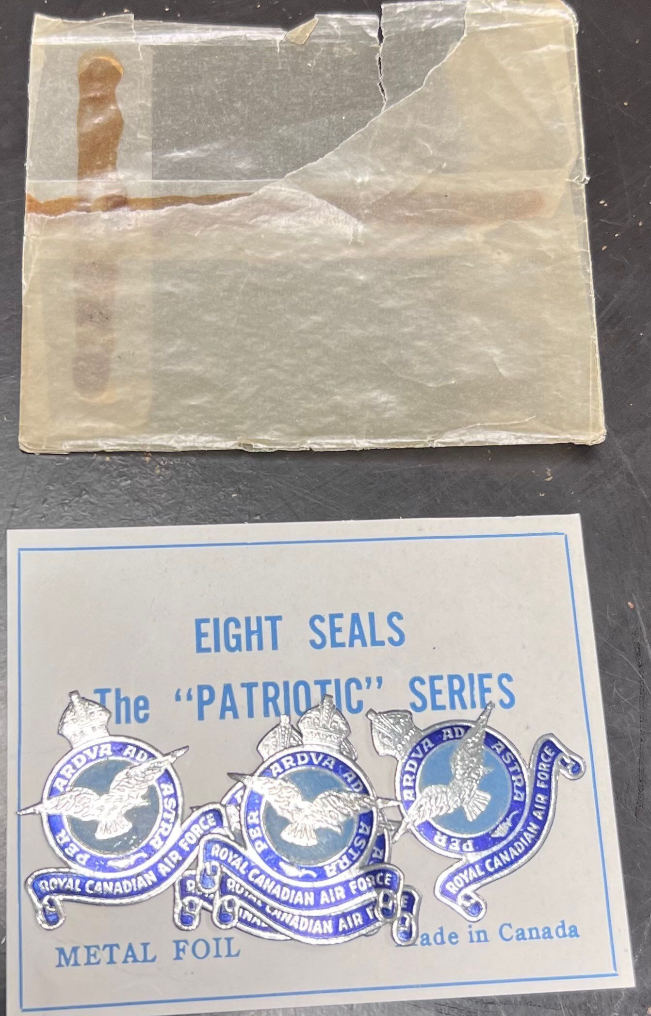 Wax-paper wrapped bundle with 5 RCAF logo foil stamps, with a paper card.Use