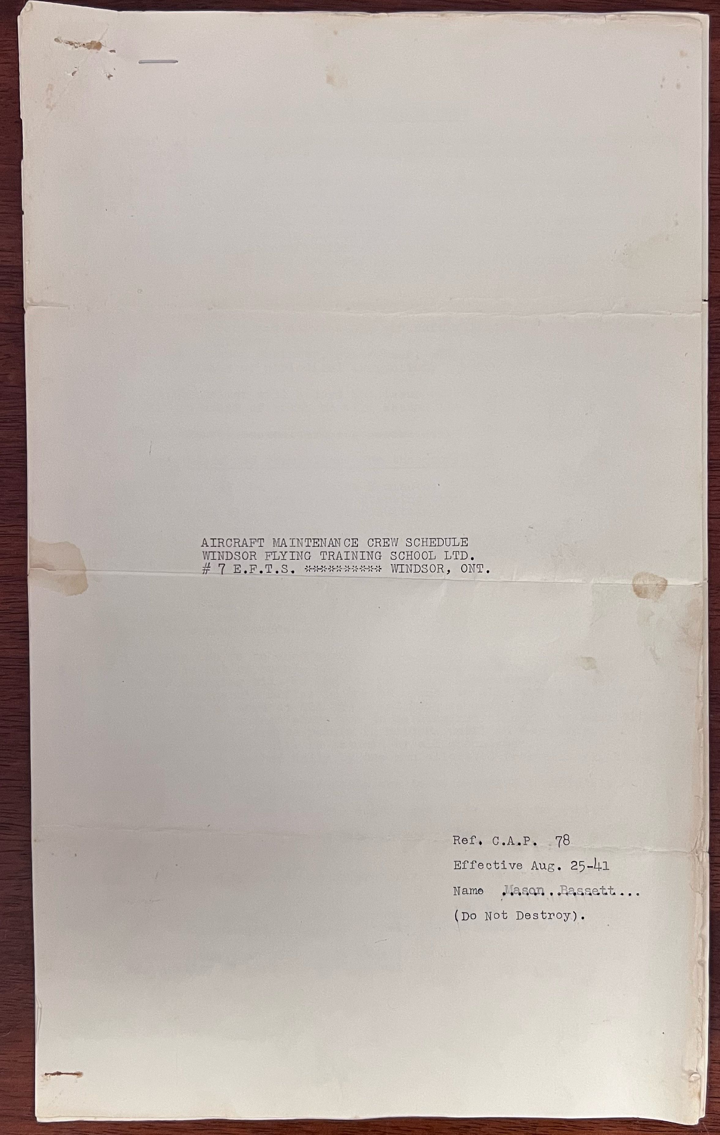 The aircraft maintenance crew schedule for No.7 EFTS, 1941.Collection