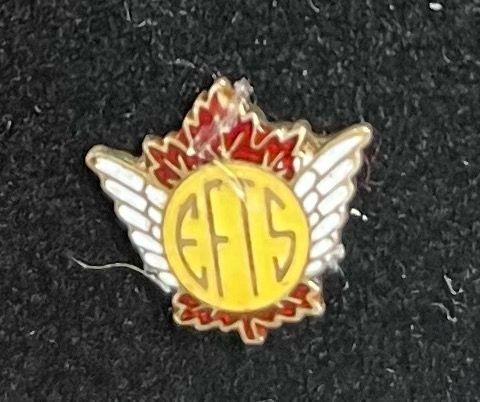 A RCAF Sweetheart pin with "EFTS" written on it and a maple leaf behind.Context