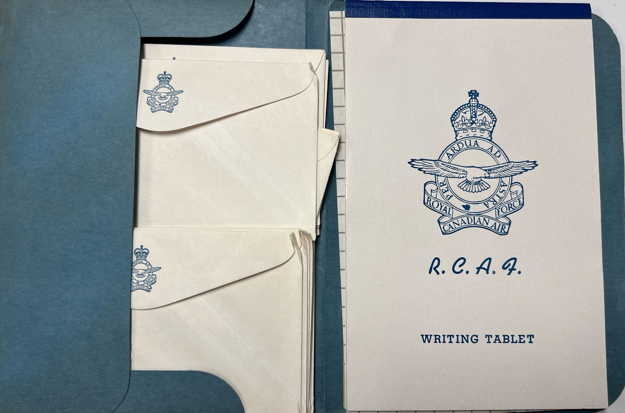 An RCAF writing set complete with notepad and envelopes marked with the RCAF logo.Context