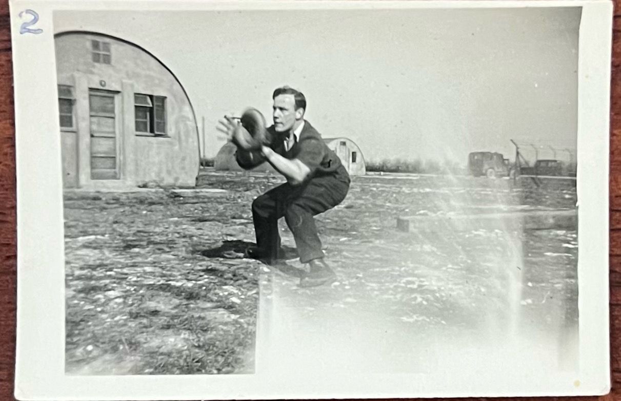 A photo of one of the Bad Penny crew playing catch while on leave.Photograph Details