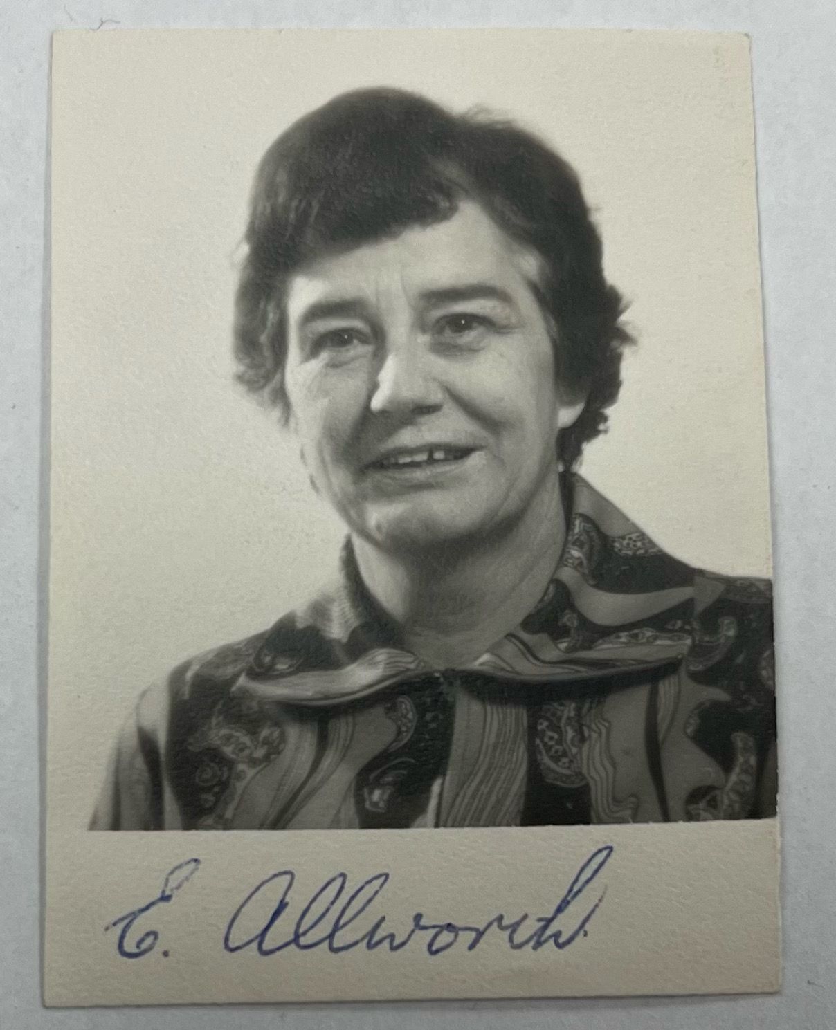 A portrait photo of Enid Morris in 1974, likely for a passport photo.Photograph Details