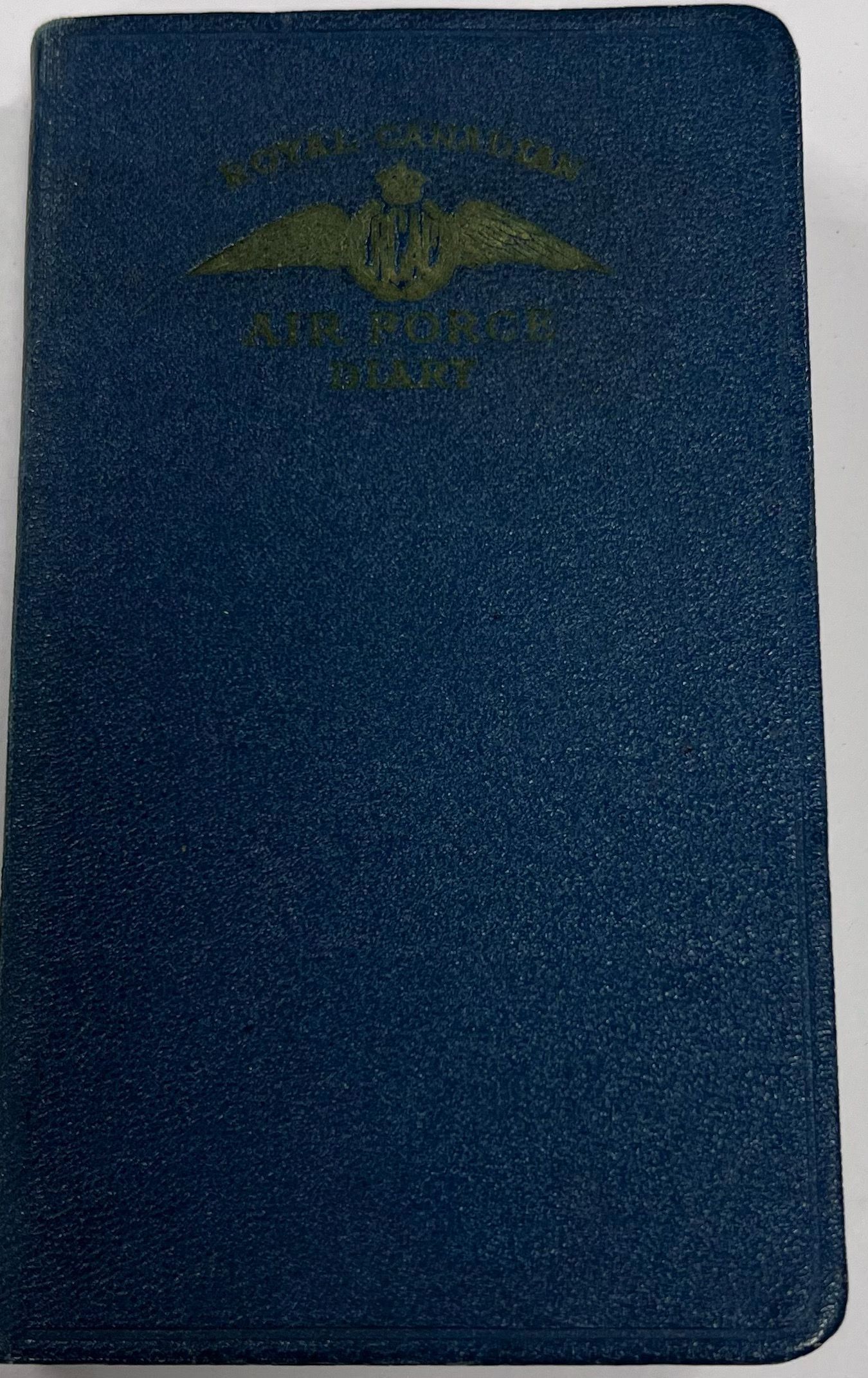 A blue diary with a gold RCAF logo on the front.Use