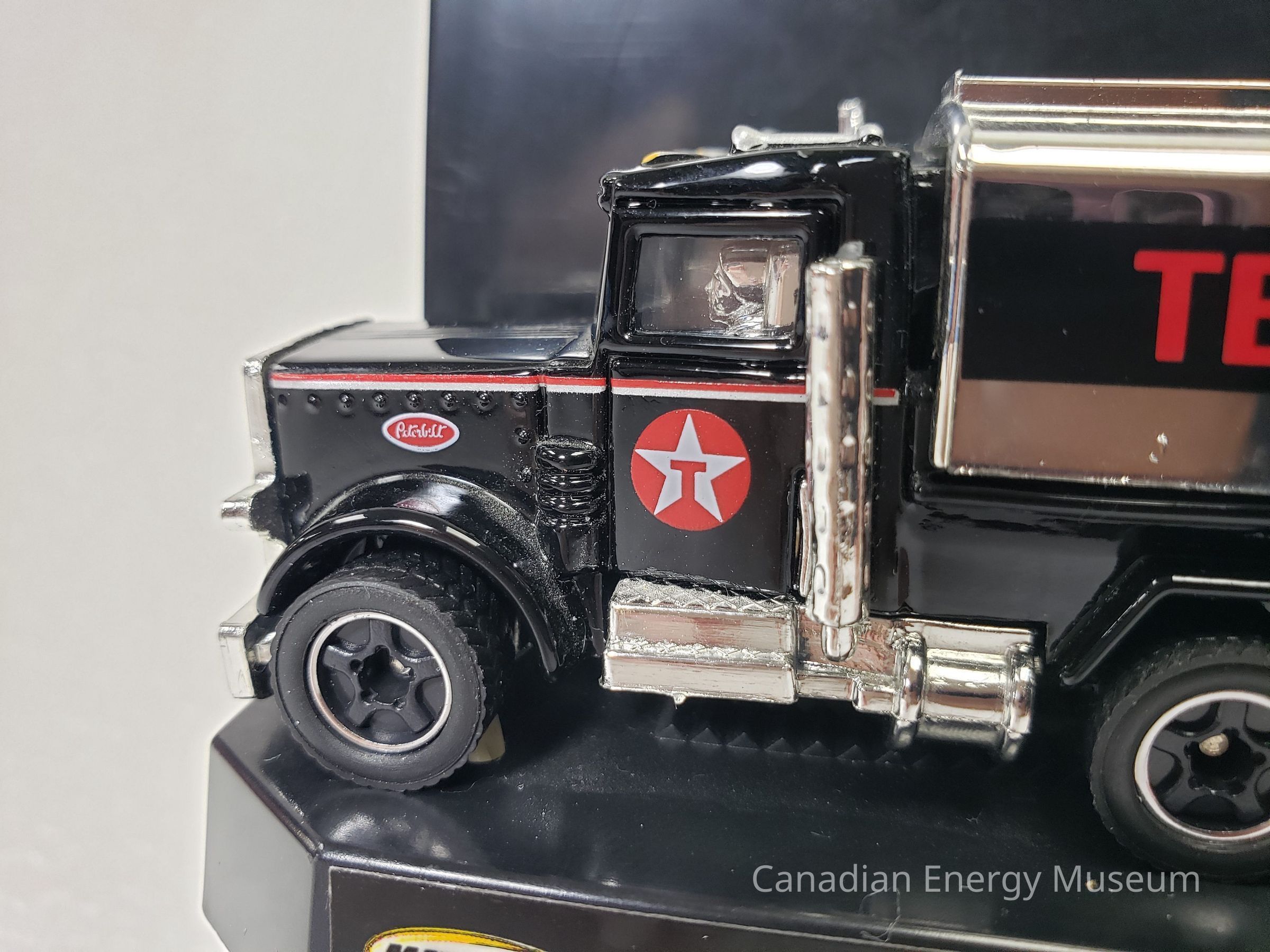 A die-cast toy car, of a 1981 Peterbilt tanker truck, branded to Texaco.