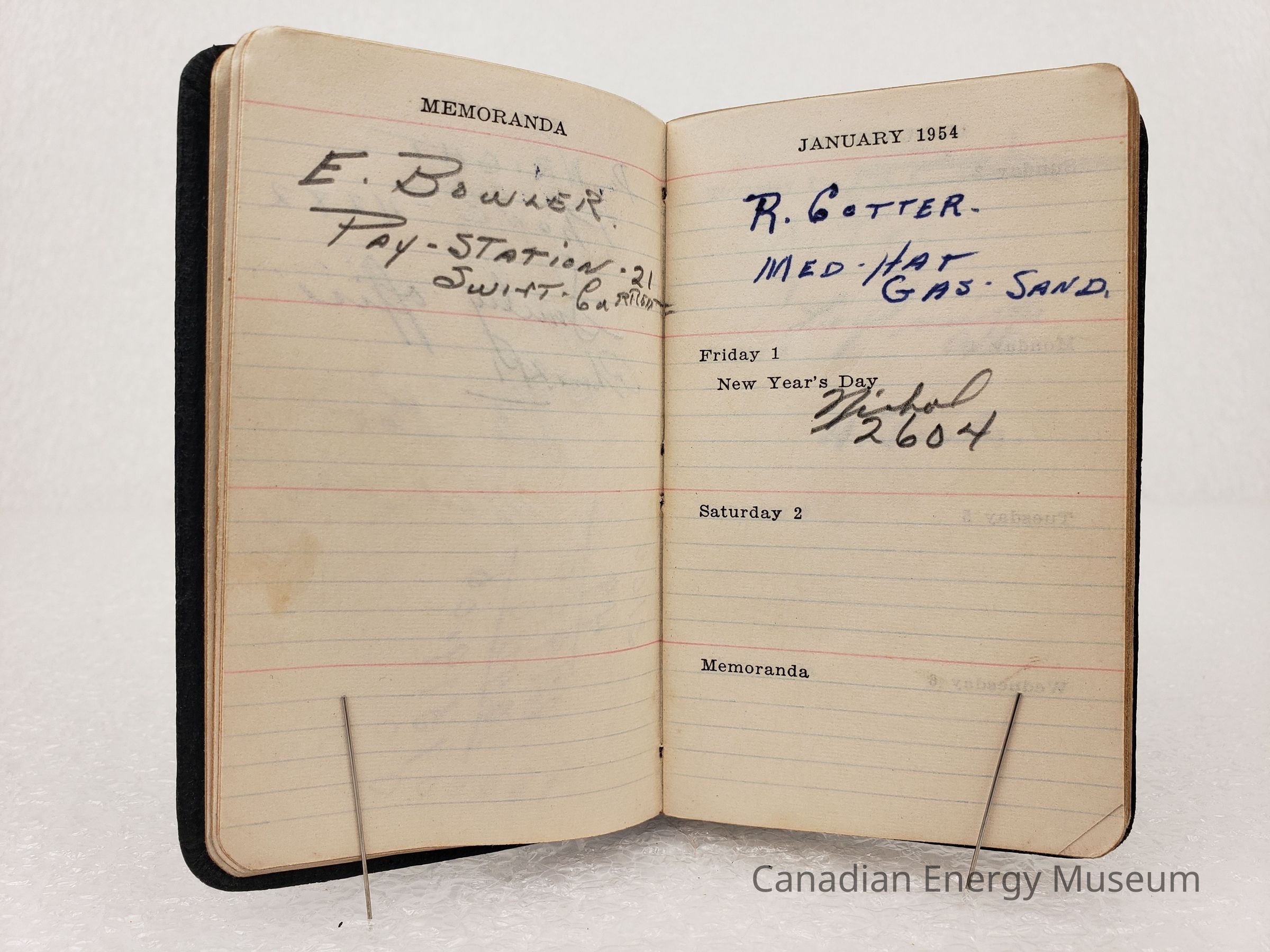 A pocket-sized planner/appointment book for 1954, branded to USS Oilwell.