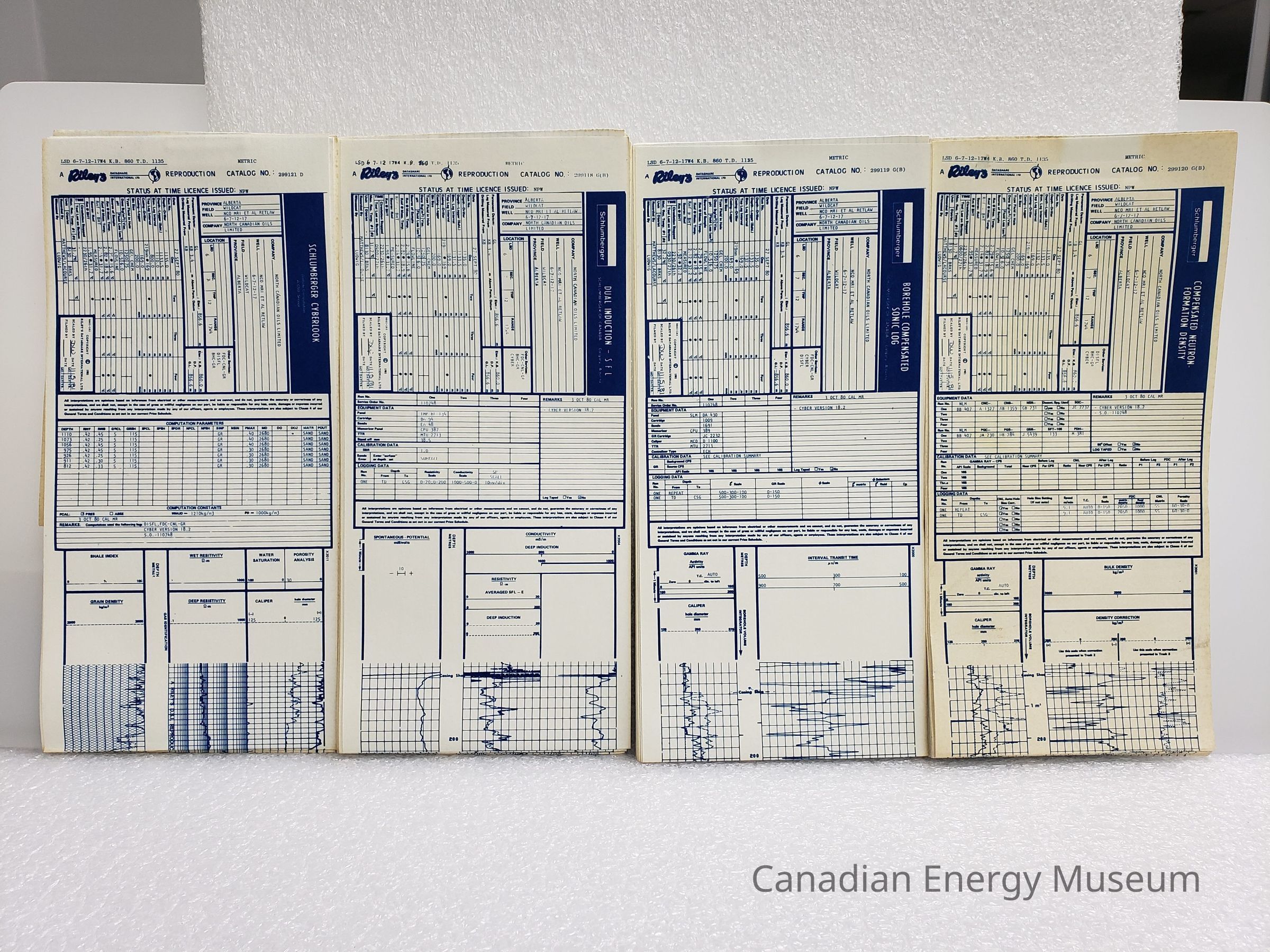 A set of four log forms, with an attached not reading "BLANK SET OF LOGS; —NO EXPLANATION OR INTERPRETATION DONE".
