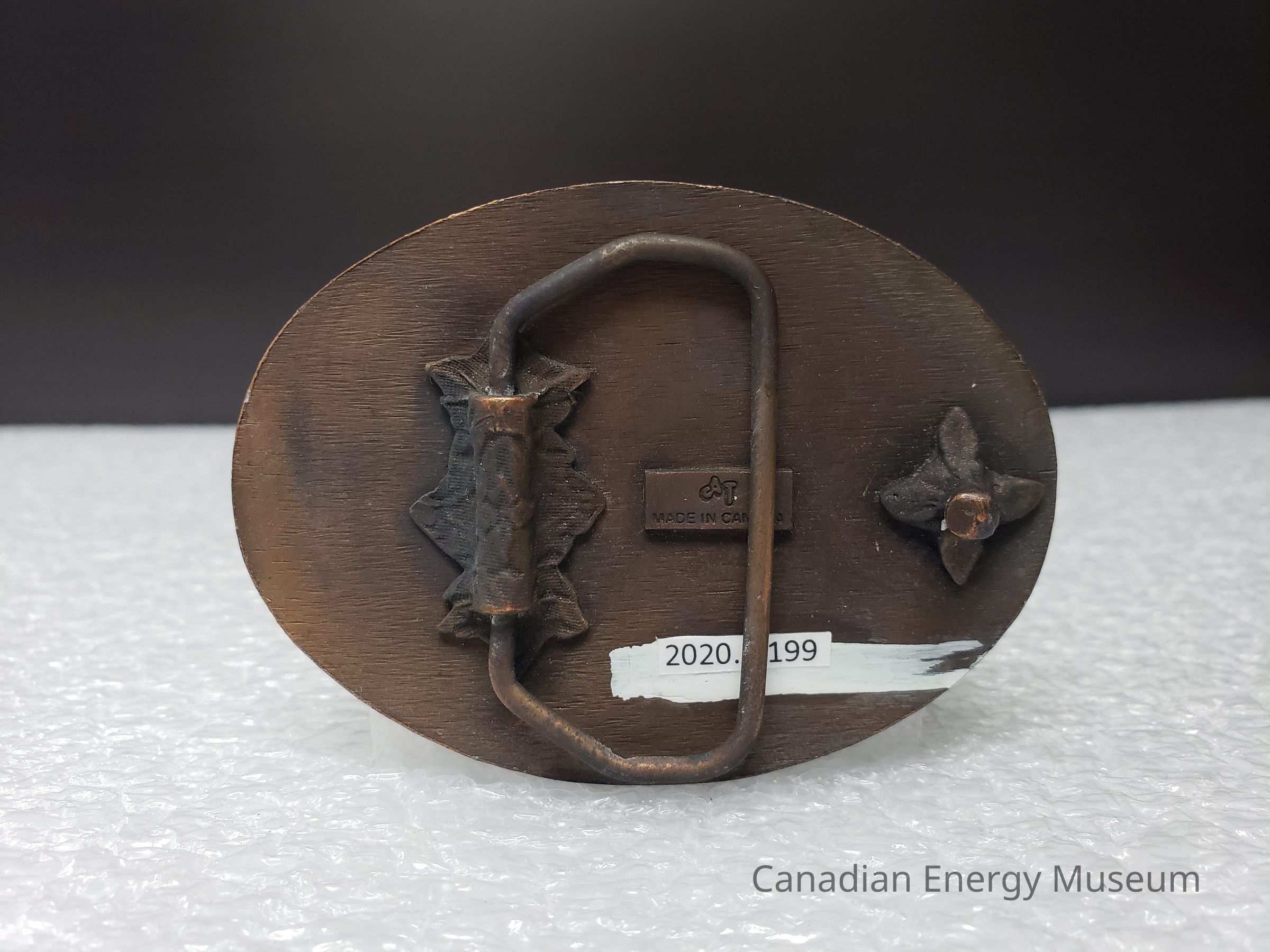 Belt Buckle, Accessory, Copper, Turquoise, Bill Jenkins Enterprises Ltd., AT Design, Metal, Oil, Oil Field, Oil Industry, OilfieldDescription