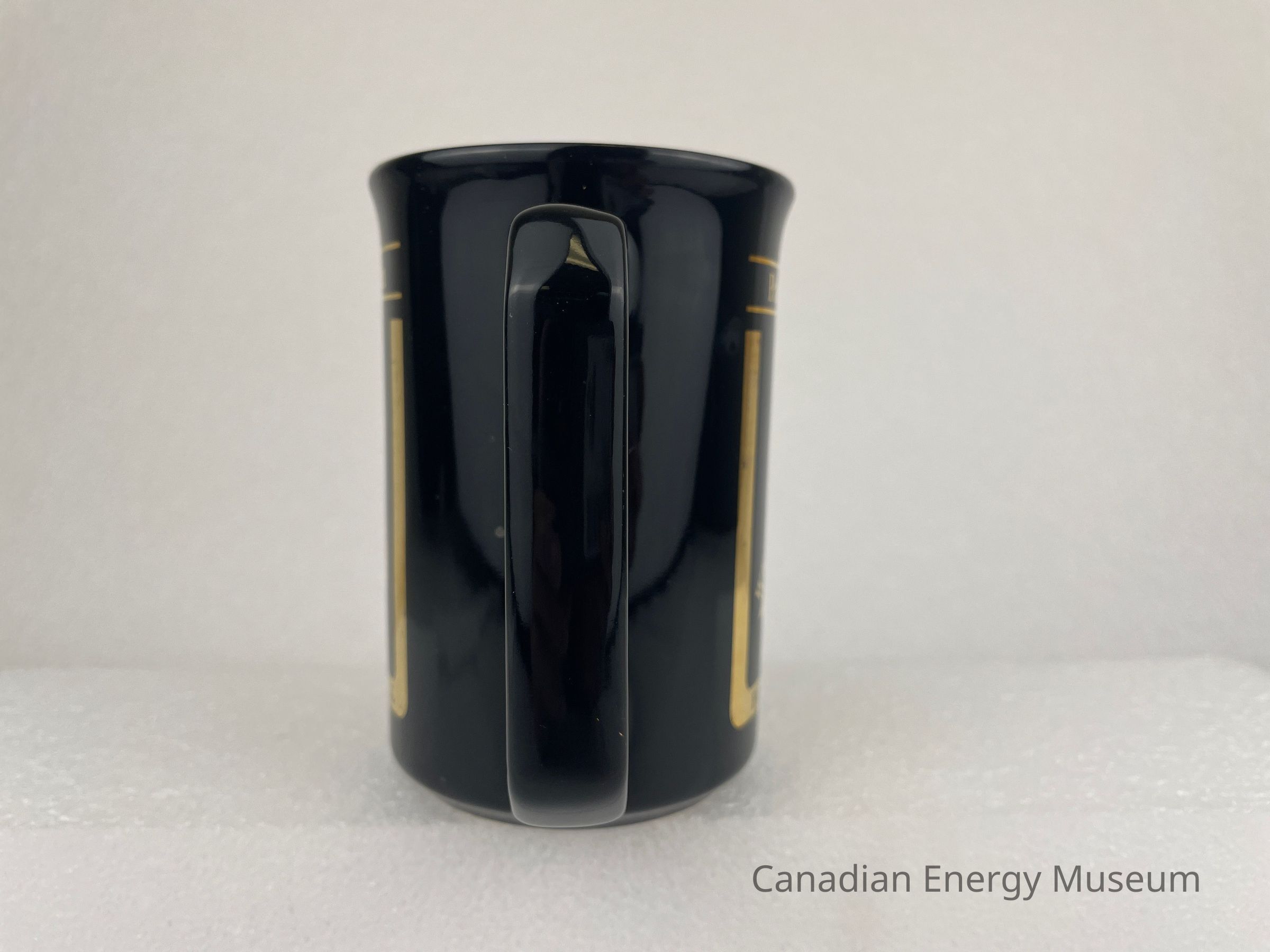 Drinkware, Ceramic, Mug, Black, Gold, PanCanadian Petroleum Limited, WeyburnDescription
