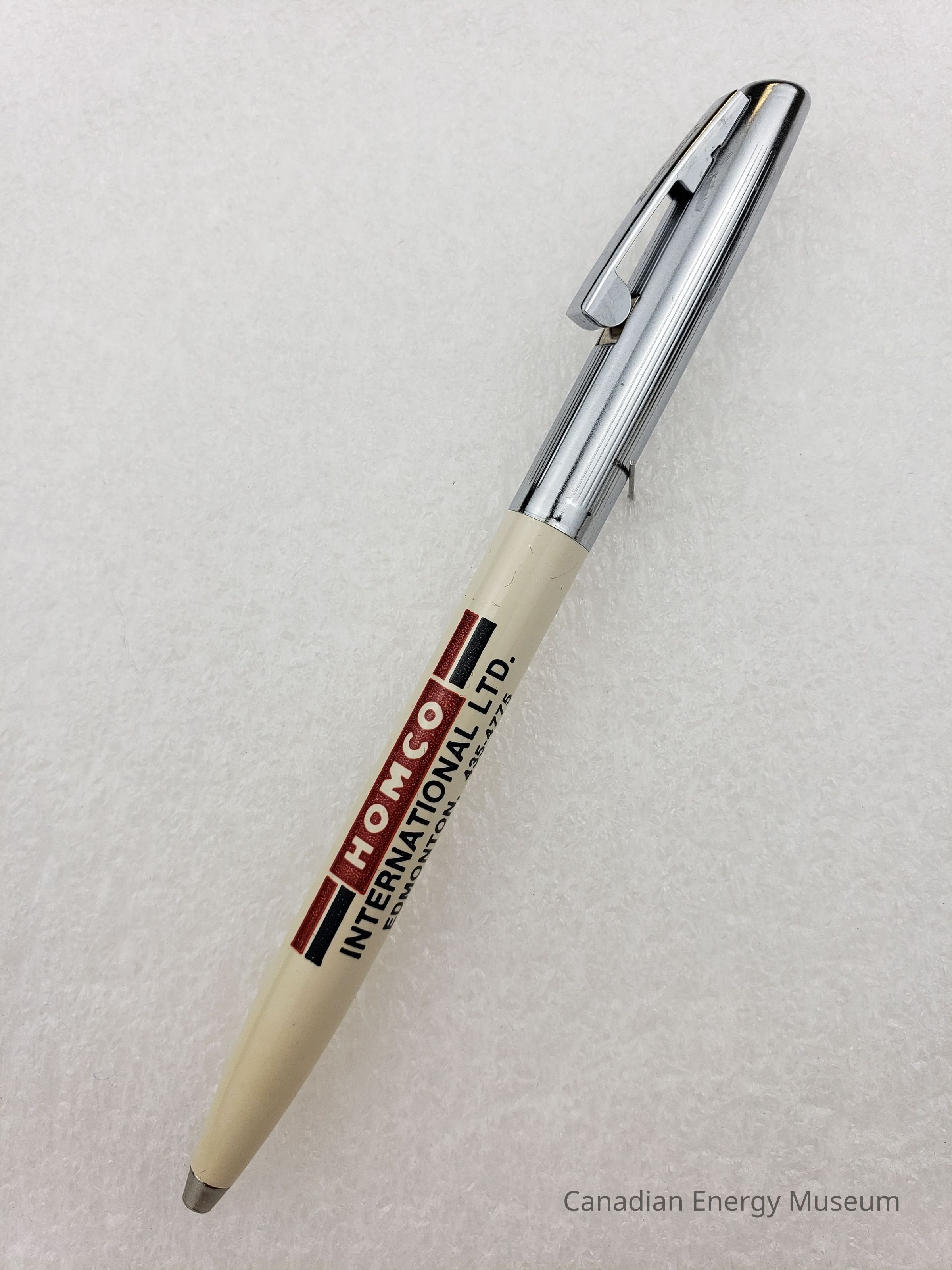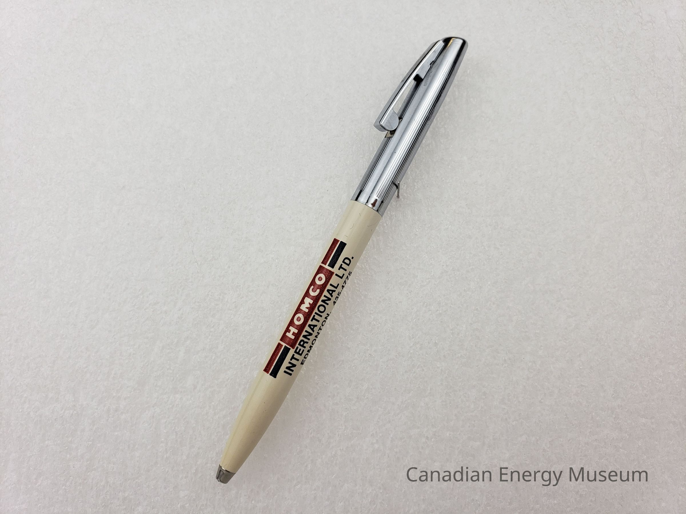 Oil, Oil Industry, Metal, Silver, Black, Pen, Ballpoint, Plastic, White, Red, Canada, Edmonton, Calgary, Homco International Ltd.Description