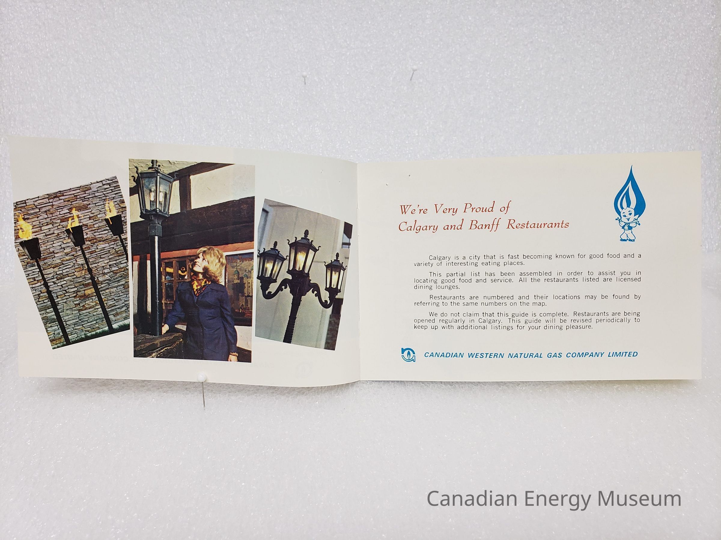 A booklet of 'fine dining' in Calgary and Banff, produced by Canadian Western Natural Gas Company Limited.