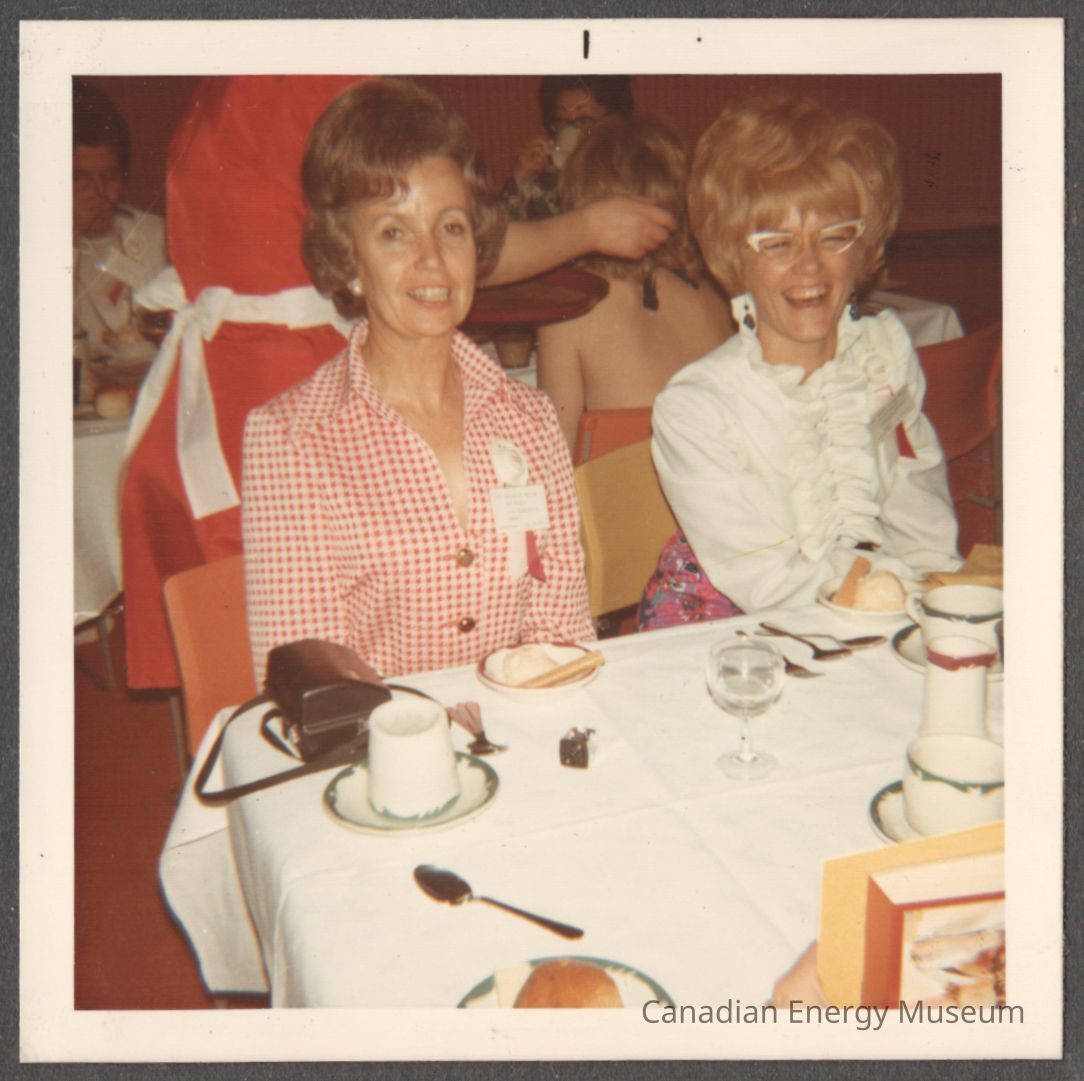 [Photo] Two Ladies Seated at a Dining Hall Table, Association of Desk and Derrick Clubs, Square, White Border, c.1972Entry/Object ID