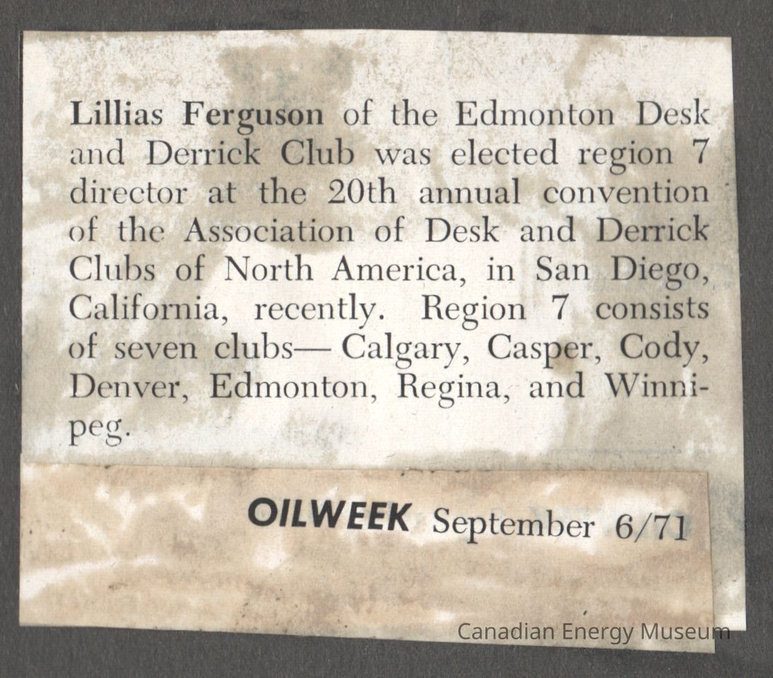 [Clipping] Lillias Ferguson Election, Oilweek, 6 September, 1971Entry/Object ID